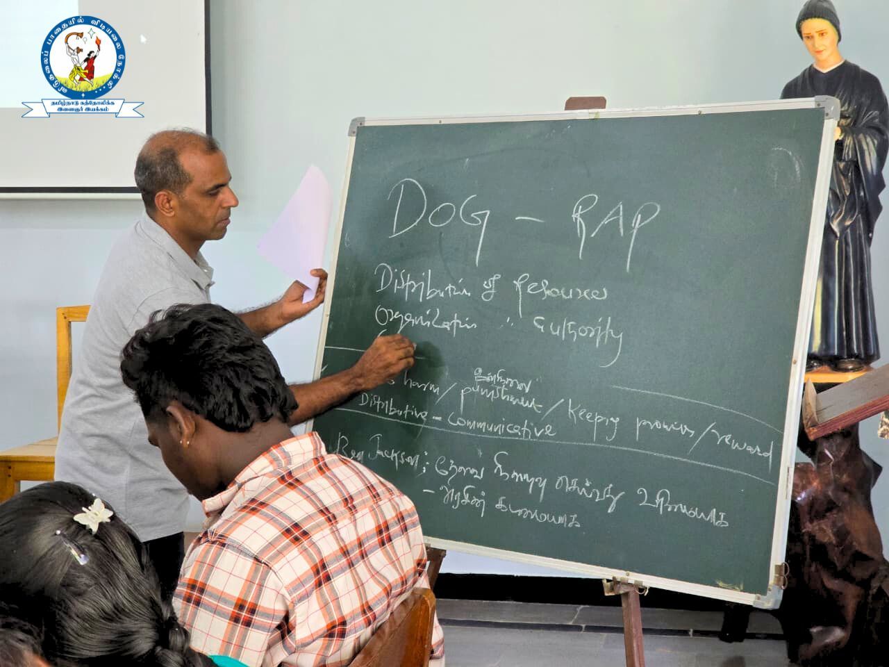 " சமூக நயன்மை என்பது இரக்கம் சார்ந்தது, அல்ல அது உரிமை சார்ந்தது. மேலும் இது தனி மனிதனின் பொறுப்பல்ல, அரசின் கடமை" என்று பணி. செகன் அவர்கள் கூறினர். பிறகு அம்பேத்கரின் பார்வையில் சமூக நயன்மை, அரசியல், சமூக, பொருளாதார நயன்மை பற்றி கருத்துரை வழங்கப்பட்டது.