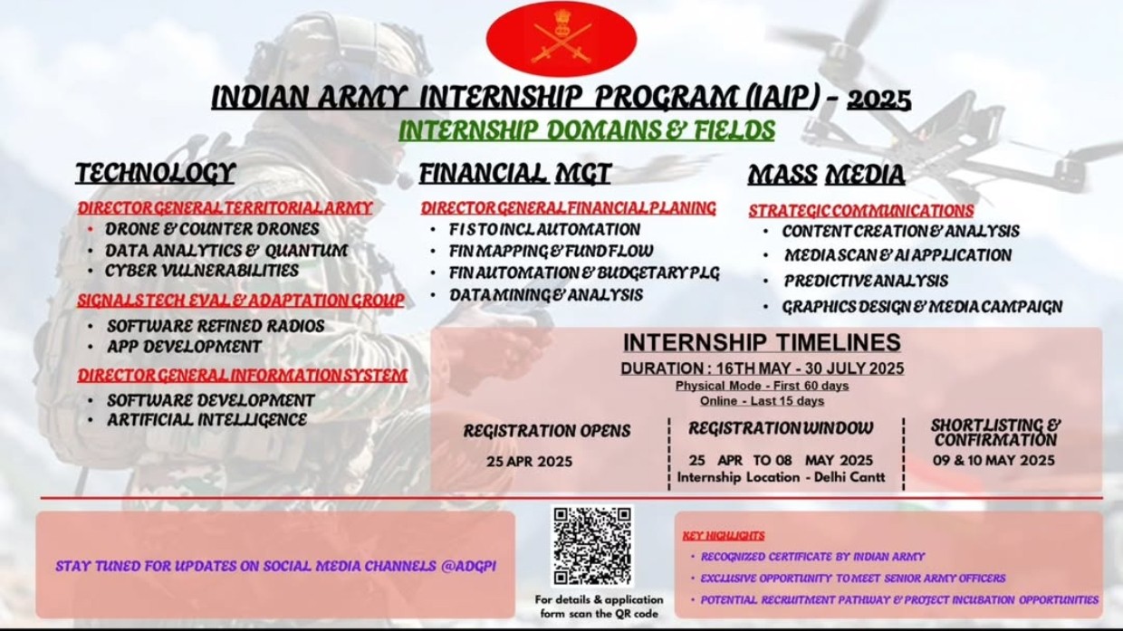 The Indian Army has launched its highly anticipated Internship Programme (IAIP) for 2025, offering an exciting opportunity for university students to gain hands-on experience in cutting-edge fields.