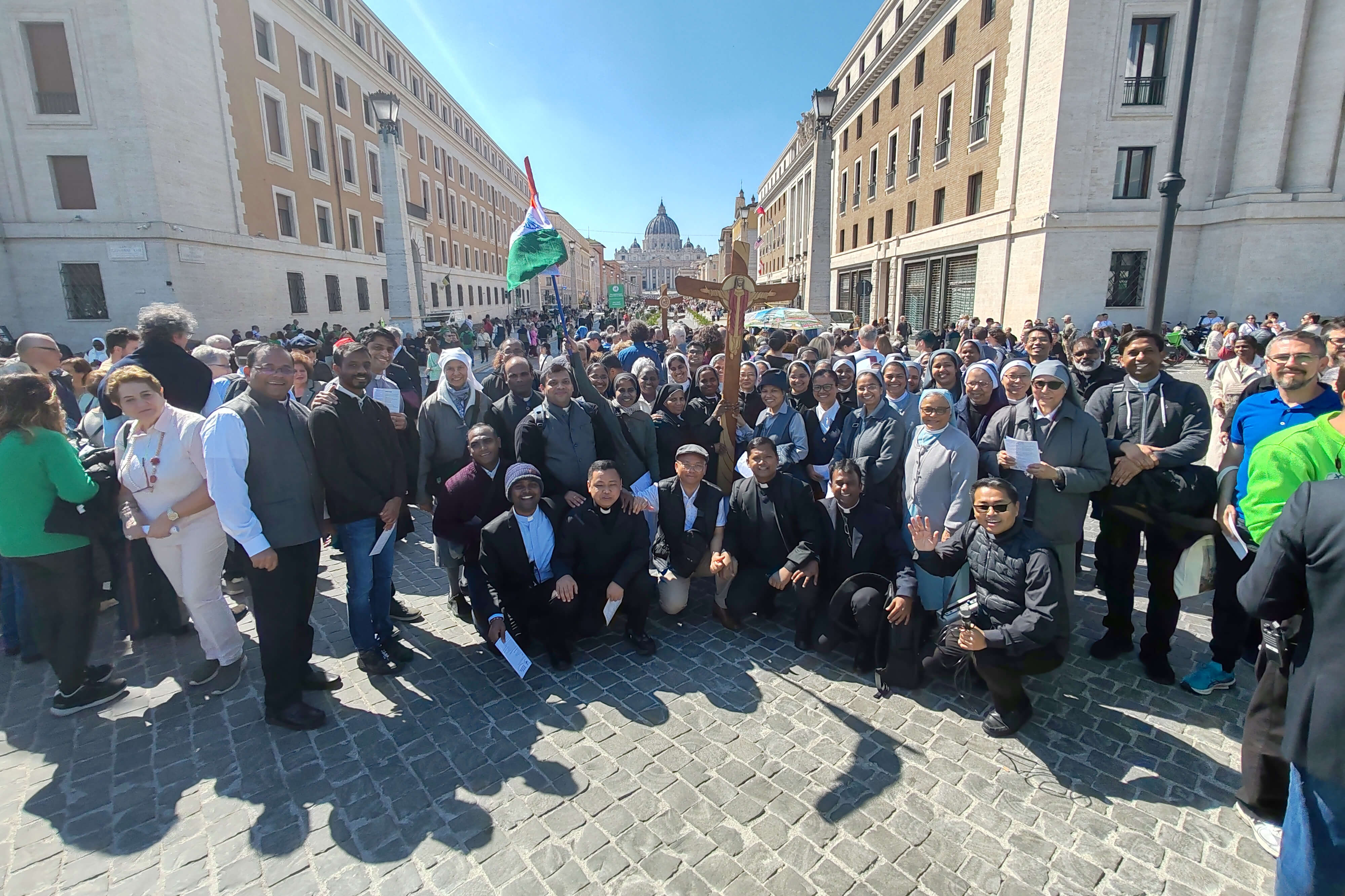 Rome, April 10, 2025 — Over 80 members of the Indian Priests, Sisters and Brothers’ Union (IPSBU), Rome, participated in a Holy Door Pilgrimage at St. Peter’s Basilica in Vatican City on Saturday, April 5, as part of the Jubilee Year 2025. The event, held in the heart of Rome, began in the afternoon at Piazza Pia and brought together priests, sisters, and brothers from various congregations, rites, and linguistic backgrounds from Rome to walk through the Holy Door as a sign of spiritual renewal and ecclesial communion.