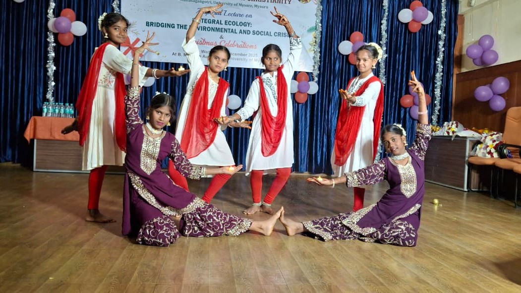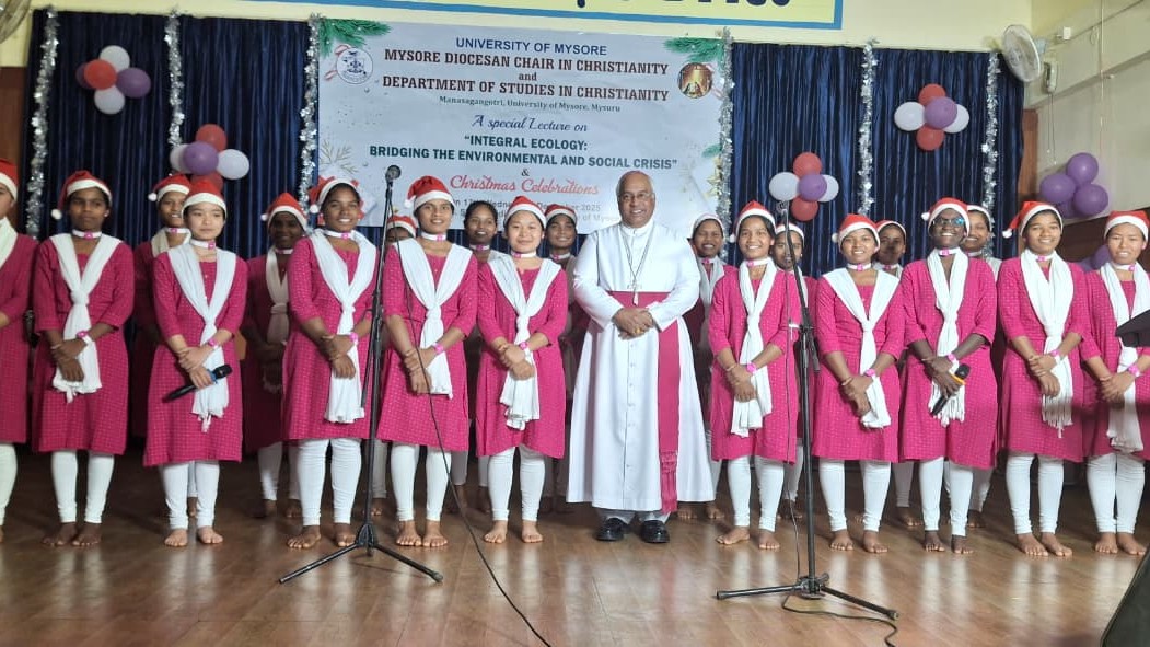 Mysuru, 18 December 2025 — Academic reflection on environmental responsibility and a spirit of Christmas celebration came together at the University of Mysore, where the Mysore Diocesan Chair in Christianity, in collaboration with the Department of Studies in Christianity, Manasagangotri, organised a special lecture on “Integral Ecology: Bridging the Environmental and Social Crisis”, followed by Christmas celebrations at the B. M. Shree Auditorium