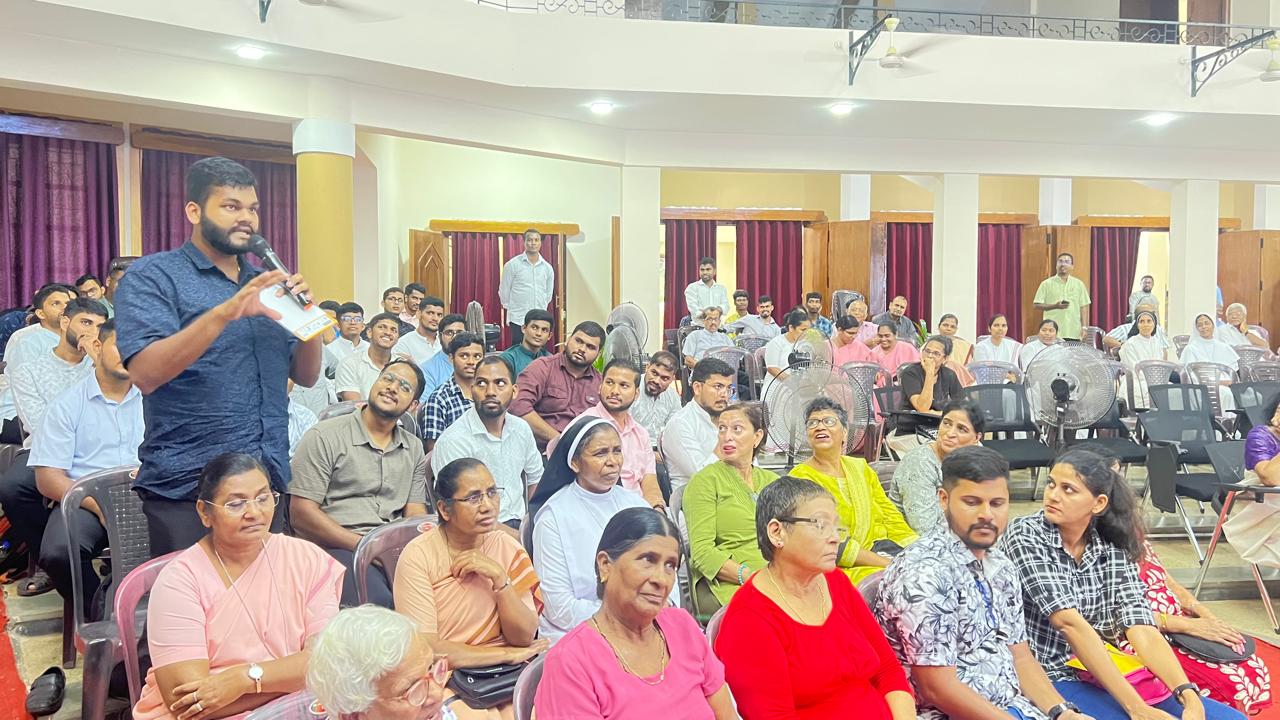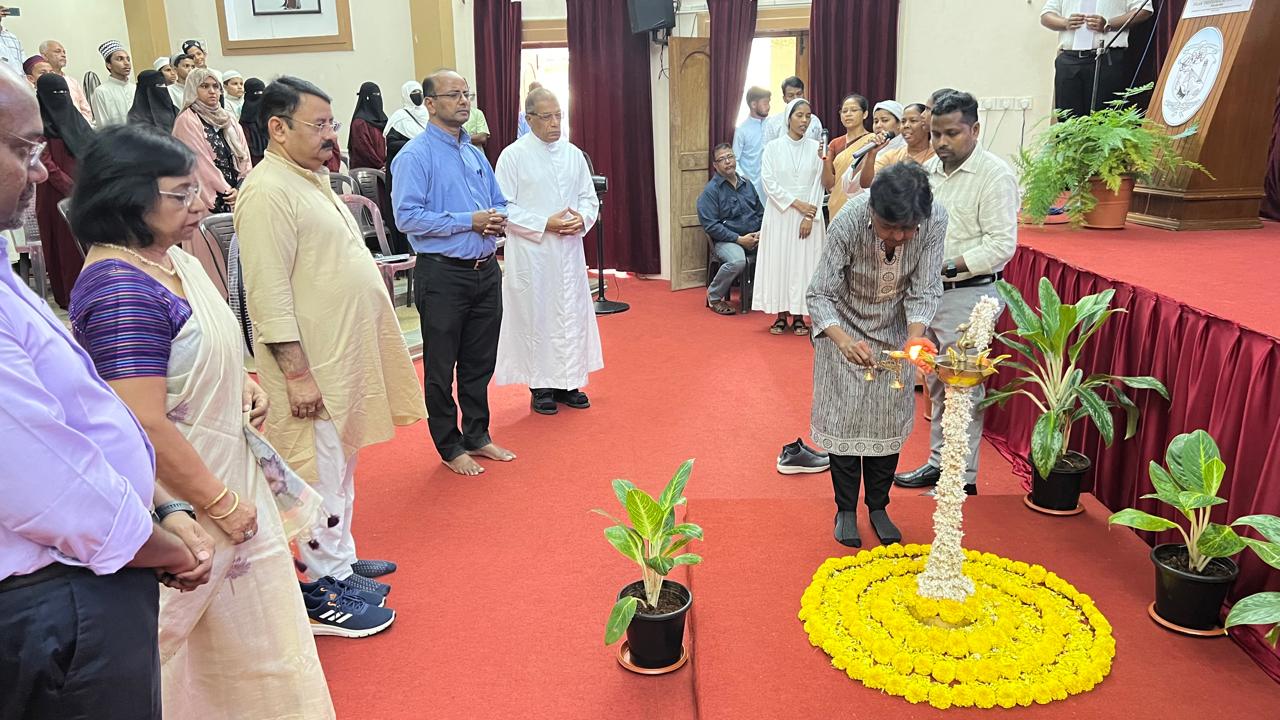 The event opened with the lighting of the lamp by Fr. Donato Rodrigues, Rector of Rachol Seminary; Fr. Norman Almeida SFX, Rector of Pilar Seminary; Fr. Ivan D Almeida SFX; the speakers; and dignitaries. A short prayer service followed with participation from Sisters of Mater Dei, scholastics of Pilar Seminary, students from Presentation School, Margao, Madrasa, Verna, and a Hindu couple from Vasco.
