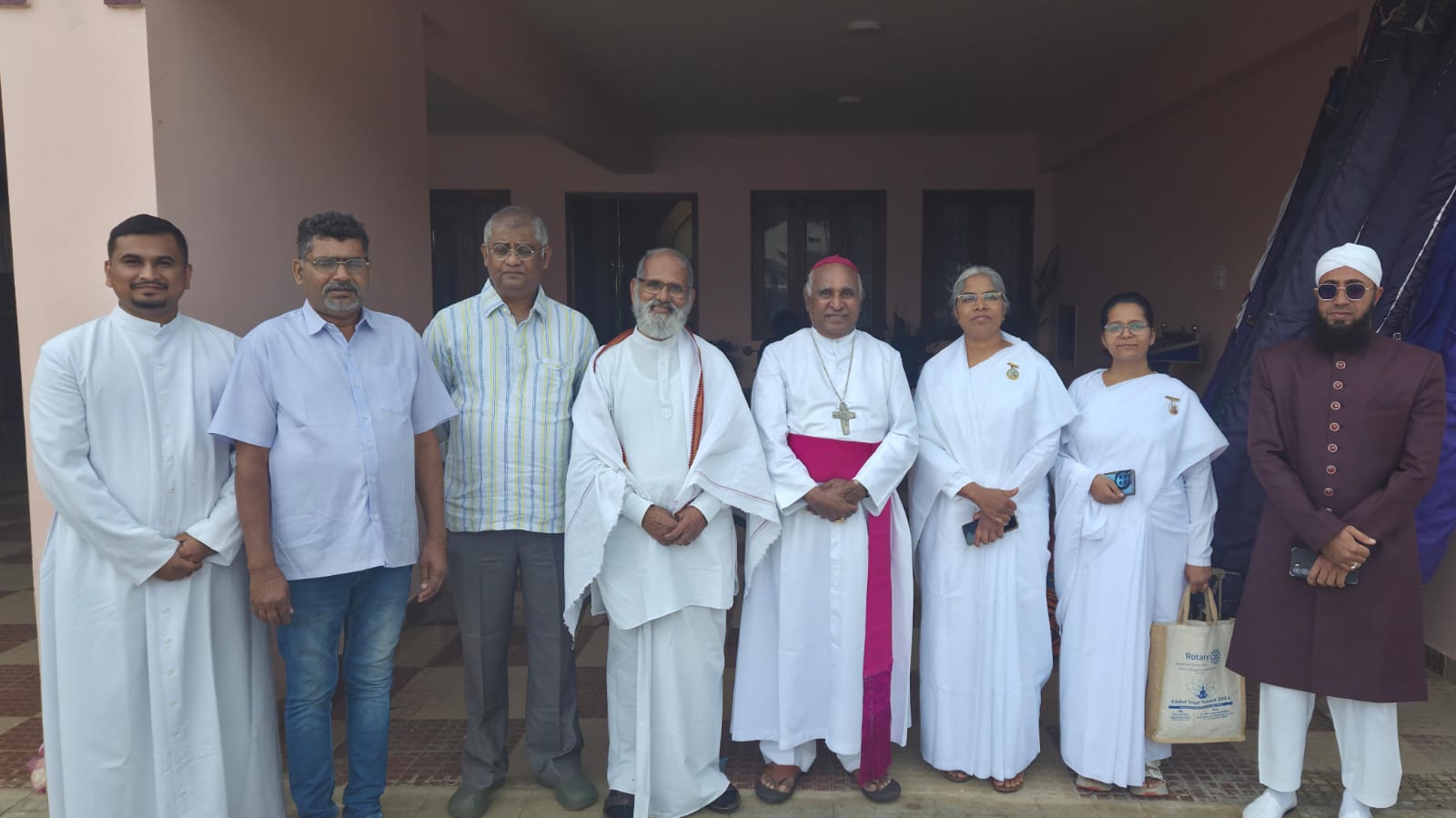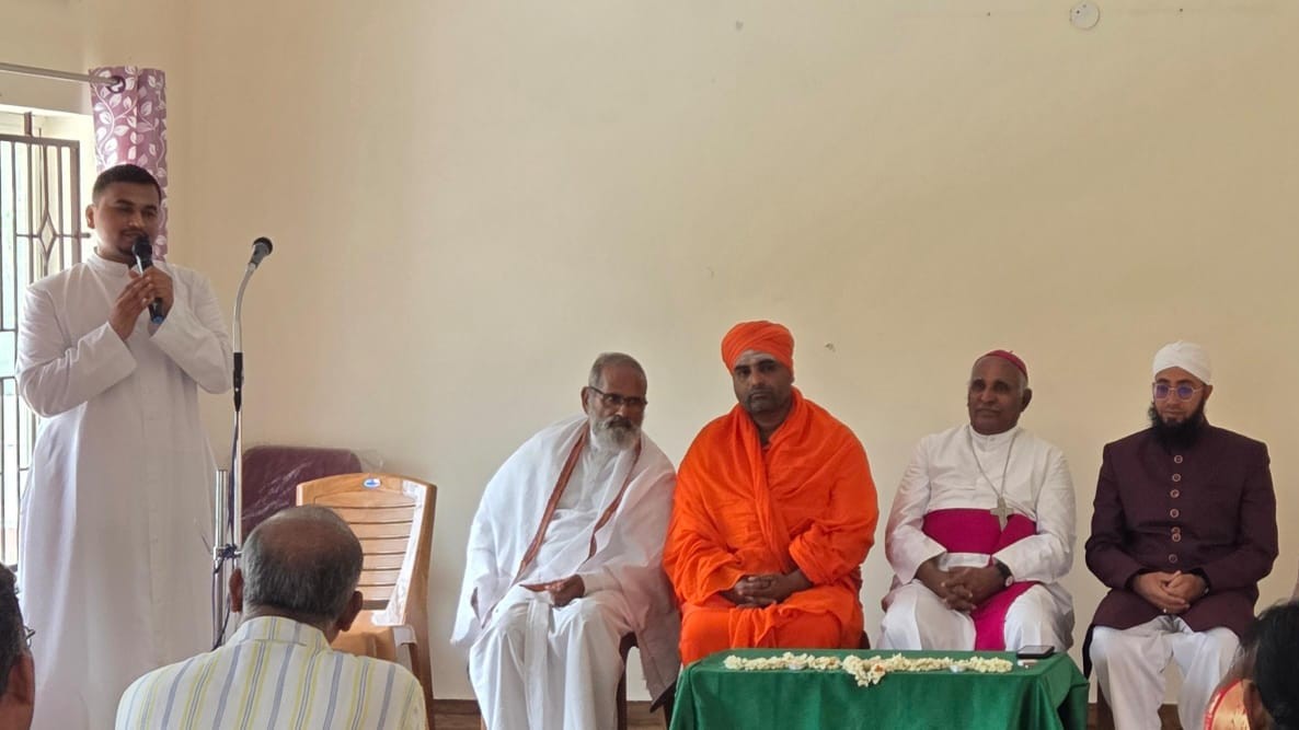 The program brought together leaders from various faith traditions, including Bishop Thomasappa Anthony Swamy of Chikmagalur, Shree Jayabasavananda Swami ji of Vishwa Dharmapeeta, Moulvi Janab Auranagazeb from Chikmagalur, Shree Bhagya from the Brahmakumari Spiritual Center, and Swamy Acharya. Also present were Fr. Vinay Kumar, Secretary of the Karnataka Regional Interreligious Dialogue Commission, and Fr. Kiran Melwin, Secretary of the Chikmagalur Diocesan Interreligious Dialogue Commission.