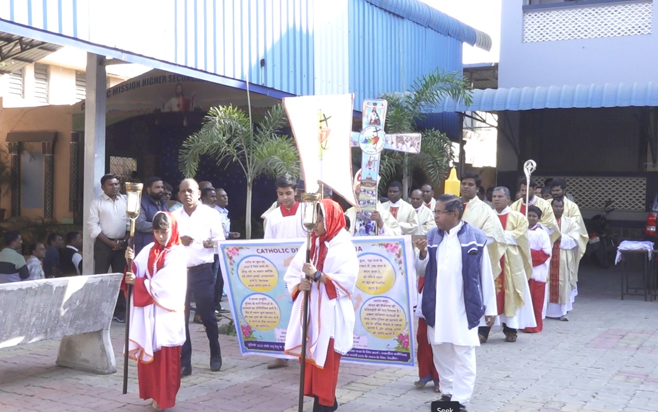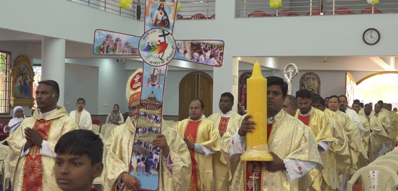 Jhabua, January 26, 2025 - The Catholic Diocese of Jhabua officially launched its Jubilee 2025 celebrations with a solemn ceremony at the Cathedral Church on Sunday. The event began with the blessing of the Jubilee Cross by His Excellency Bishop Peter Kharadi, followed by an explanation of the Jubilee year's significance by Rev. Fr. Thomas Kennedy to a large gathering of priests, sisters, and lay faithful.