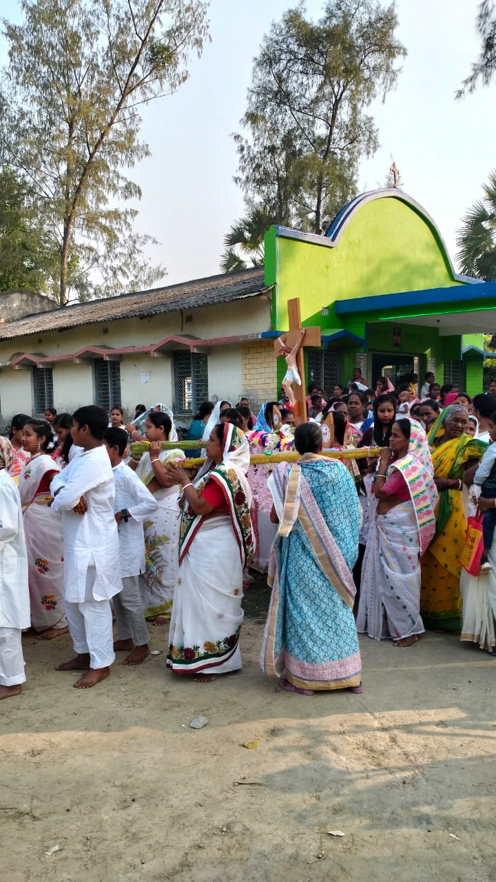 Khari, West Bengal, February 10, 2025 – The veneration of the Jubilee Cross continues with great devotion in the Diocese of Baruipur, West Bengal, ever since the jubilee year was inaugurated by Most Rev. Shyamal Bose, Bishop of Baruipur Diocese. The sacred cross is currently housed at Ascension Church, Khari, where it will remain until February 20, 2025, before being solemnly handed over to the next parish in Morapai. Throughout its stay at Ascension Church, parishioners have gathered in large numbers to offer their reverence, participating in prayer services and special observances.