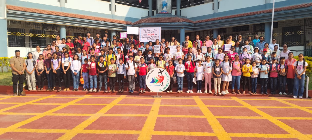 Sindhudurg, Maharashtra, 20 March, 2025 – As part of the Jubilee of Catechism Children, Milagris Catholic Pilgrims of Hope undertook a spiritual pilgrimage on March 16 to the revered Shrine of Our Lady of Velankanni in Ajgaon, strengthening their faith through prayer, devotion, and unity. The pilgrimage was attended by 130 Catholic students from Years 4 to 9, along with Fr. Roger, Sr. Kavita, and other catechism teachers, who came together in a spirit of devotion and reflection.