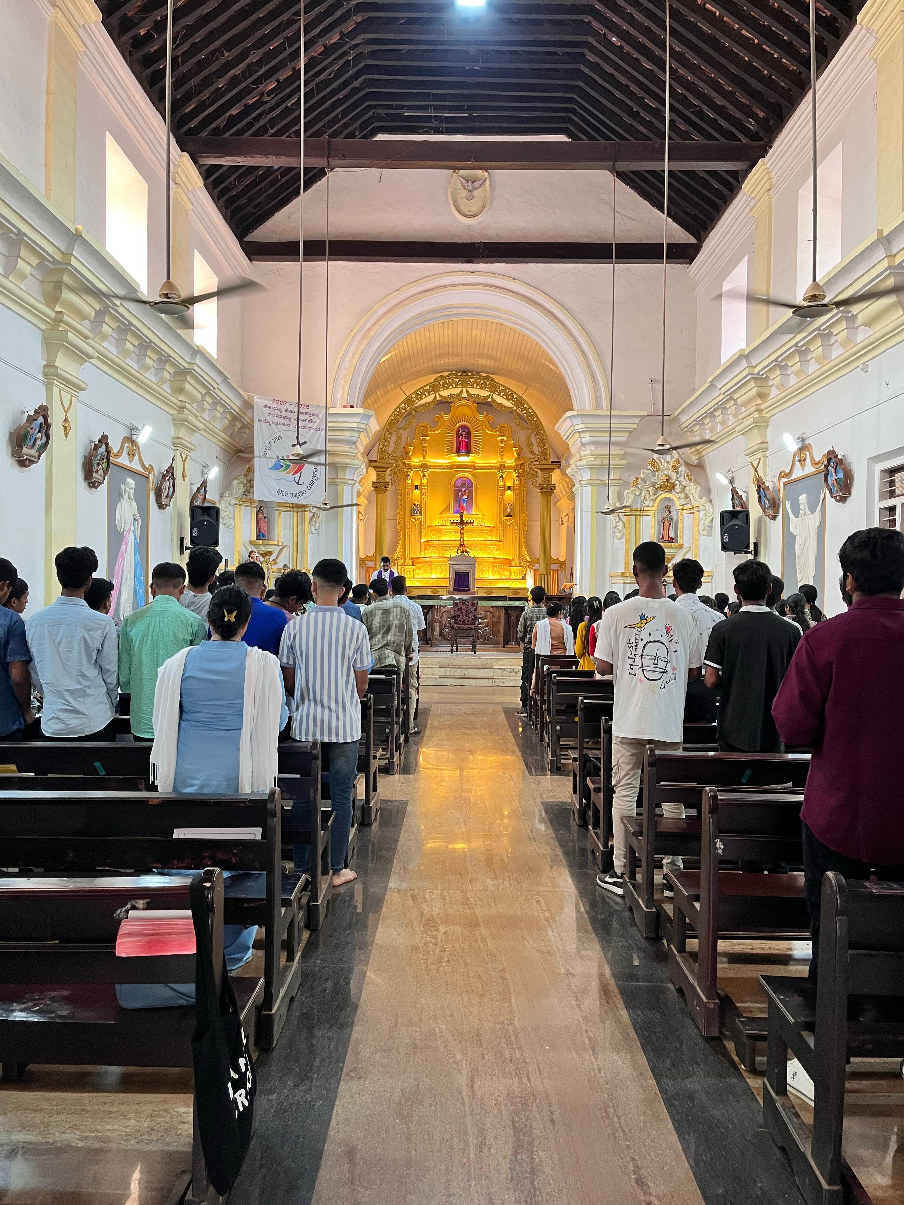 Fr. Wilson D’Souza, Fr. Silvan Rodrigues, Sr. Romalia, and Sr. Freshina accompanied the pilgrims, providing spiritual guidance throughout the journey. Pilgrims gathered at San Salvador Church, where Fr. Silvan Rodrigues led the Prayers of the Church.