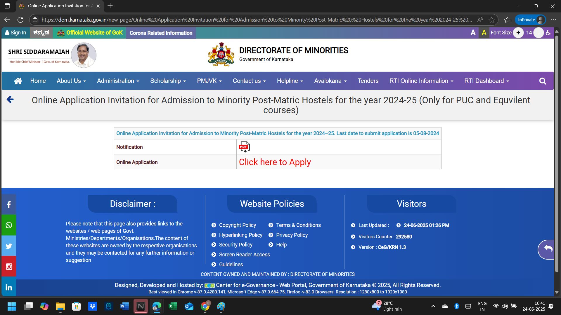 Interested applicants can submit their forms online via the State Scholarship Portal (SSP) at ssp.postmatric.karnataka.gov.in/ssppre or through the Minority Welfare Department’s official website at dom.karnataka.gov.in.