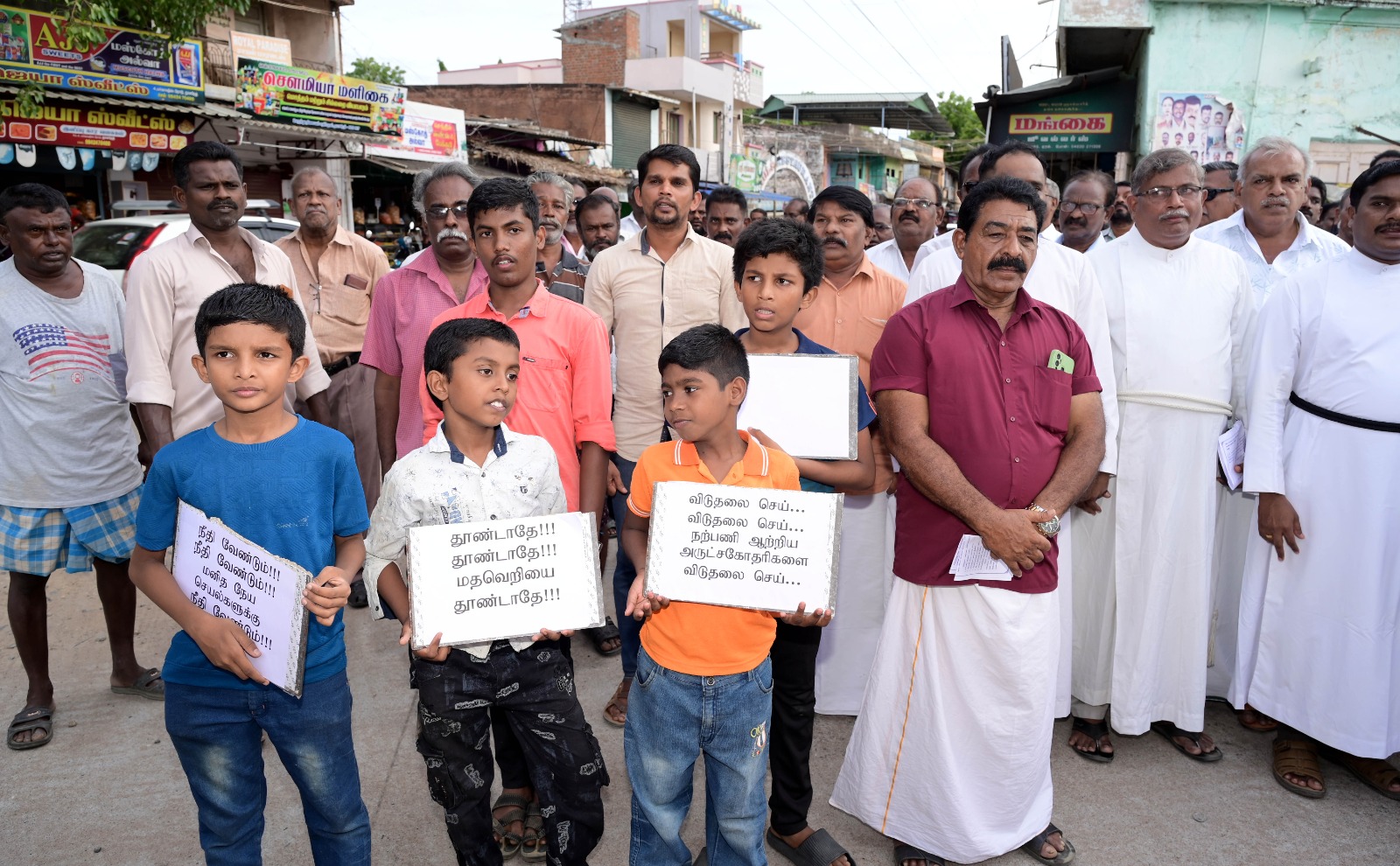 Simultaneous rallies were organised in Tisaiyanvilai, Nazareth, Vallioor, Anjugram, and Sathankulam, where large crowds—including non-Christians—voiced their outrage over what they termed as unjust treatment of religious personnel and growing threats to religious freedom in India. Protesters carried placards bearing messages such as “Religious Freedom is a Fundamental Right,” “Stop Targeting Minorities,” and “We Stand with Our Sisters.”