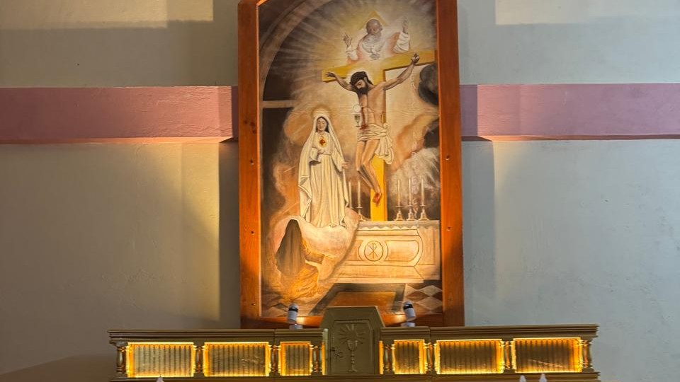 The church features Marian symbolism linked to the Fatima message and will serve nearly 1,000 Catholic families from 20 villages, benefiting a population of more than 6,000 people. Fr. Edward Sten supervised the construction of the church.