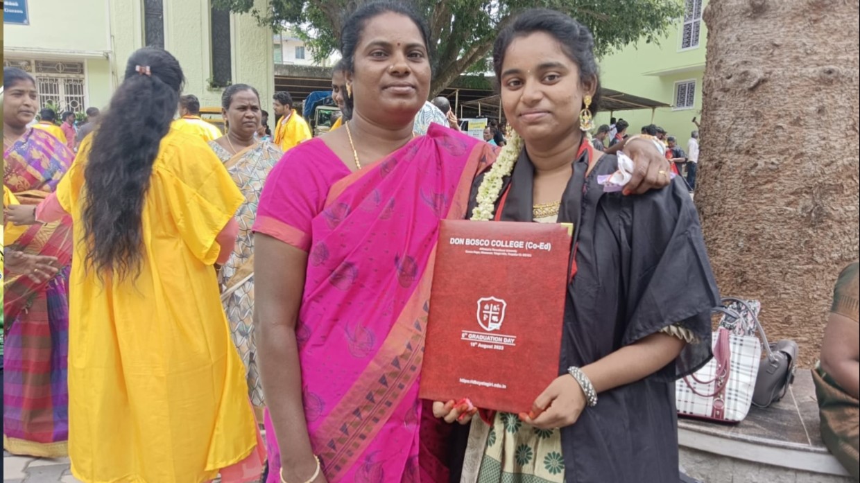 A first-generation graduate with a Master’s degree in Mathematics and a full-time state worker of the All India Catholic University Federation (AICUF) in Tamil Nadu, Vincy’s journey is rooted in humility. She hails from Xavier Palayam village in Kallakurichi district, on the banks of the Thenpennai River. Losing her father at just ten months old, she was raised by her mother, Helen Mary, an agricultural labourer who single-handedly brought up three children with grit and sacrifice.