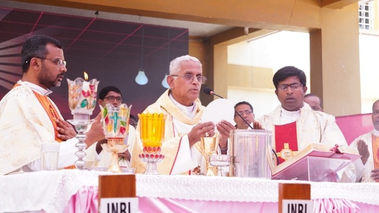 Over the next two days, the faithful participated in bhajans, Bible reflections, and Eucharistic celebrations. The highlight was a Festive Mass presided over by Bishop Miranda, followed by a large Annadasoha that served thousands of devotees.
