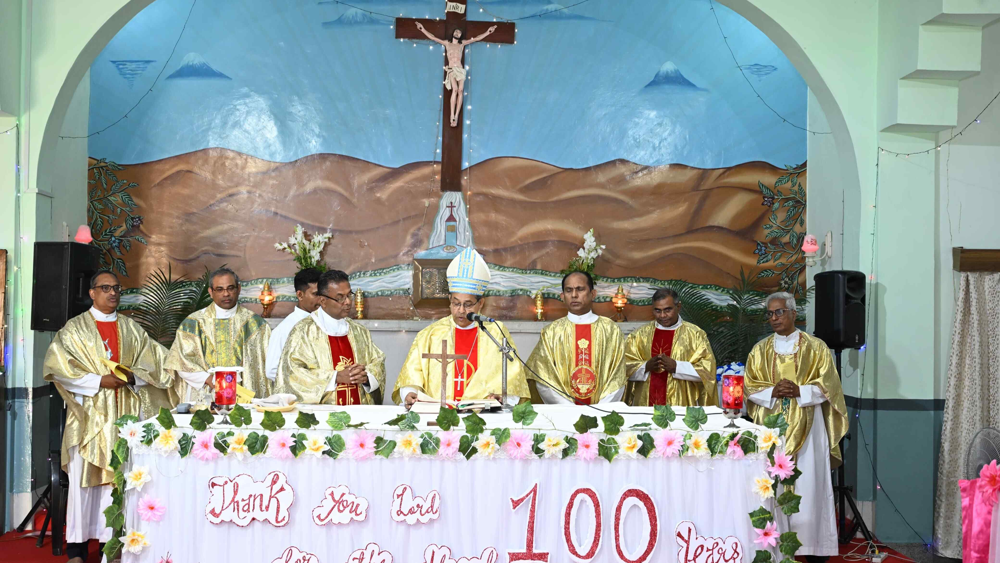Prayagraj, 24 March, 2025 – A solemn Eucharistic celebration marked the centenary of Christian presence at Queen of the Apostles Church, Chatham Lines, Prayagraj, in the Diocese of Allahabad. Bishop Louis Mascarenhas, of Allahabad led the special Mass on 23 March, joined by around 30 priests, 75 nuns, and 100 lay faithful.