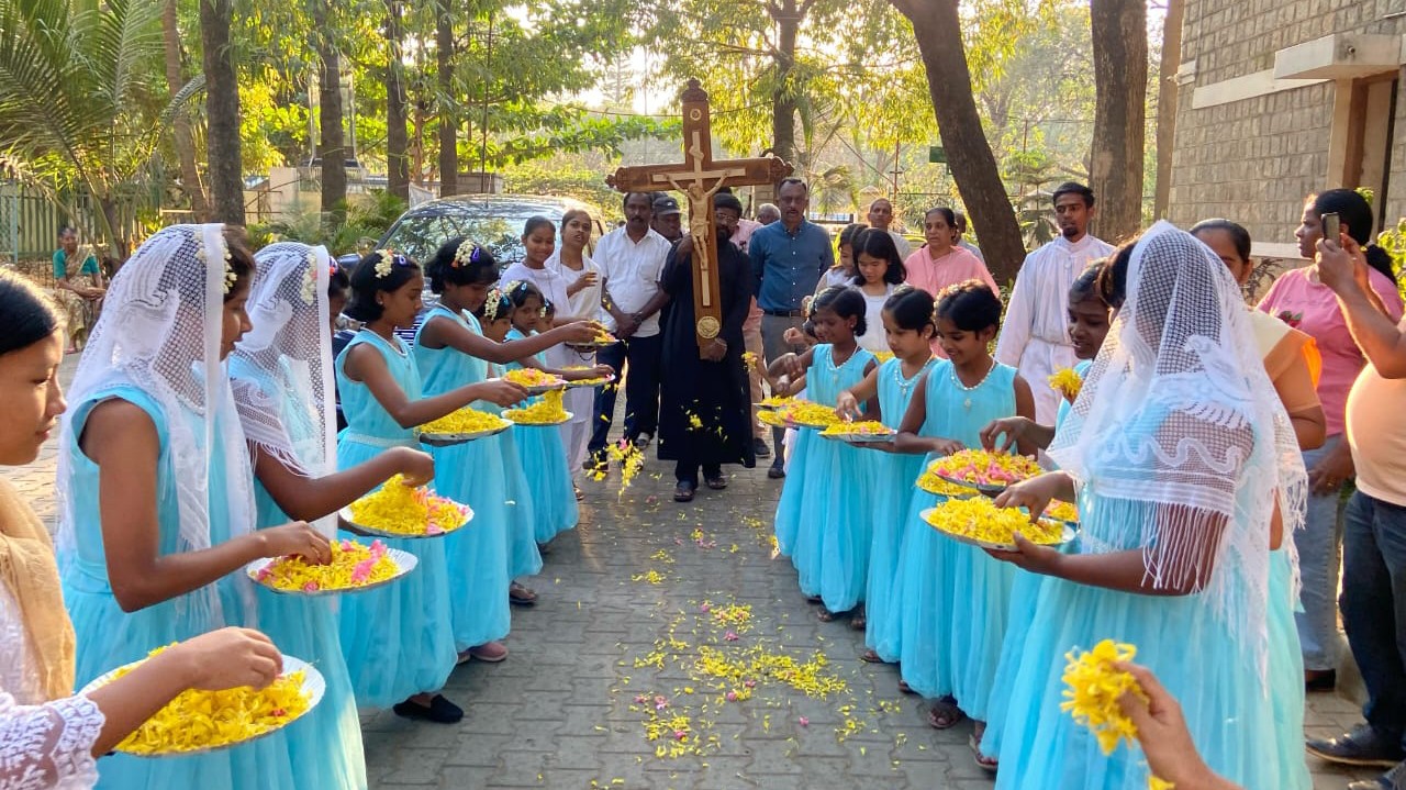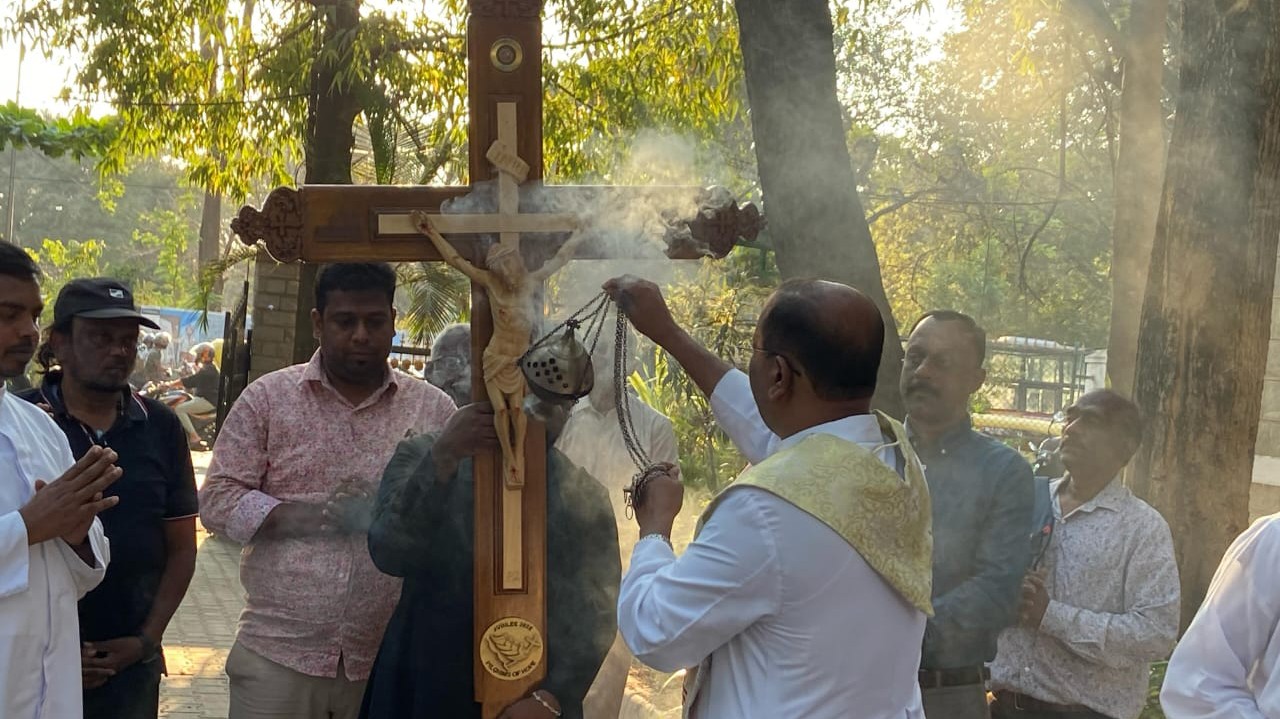 Bangalore, 18 March, 2025: Resurrection Church in Indiranagar, Bangalore marked a significant occasion as it welcomed the Jubilee Cross with deep reverence and devotion on 15th March 2025. The cross arrived, and a solemn procession was held, with incense and flowers offered in honour of the sacred symbol. Children from the parish presented the flowers, adding a special touch to the occasion. Parishioners gathered in large numbers to follow the procession as the Jubilee Cross was carried into the church, where it was placed next to the altar.