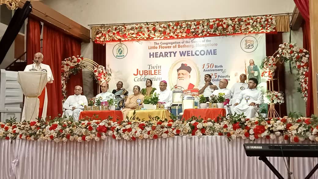 MANGALORE, 1 March 2025 – The Congregation of the Sisters of the Little Flower of Bethany in Mangalore marked the twin Jubilee celebrating the 150th birth anniversary and the 125th anniversary of the priestly ordination of Servant of God Raymond Francis Camillus Mascarenhas on 28 February. The event included a felicitation program and a solemn Eucharistic celebration, presided over by Archbishop Filipe Neri Cardinal Ferrão. Bishop Peter Paul Saldanha delivered the homily.