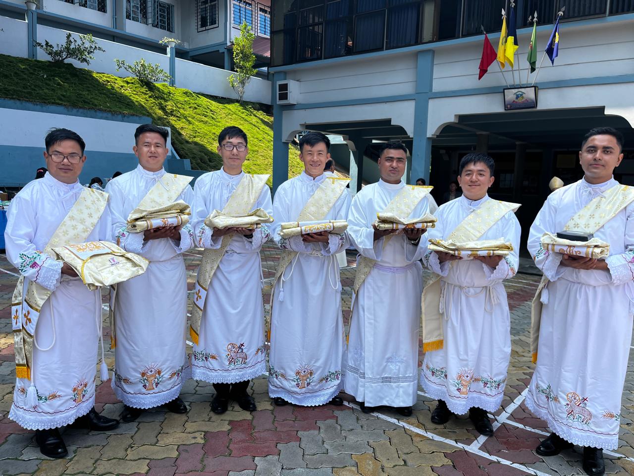 The ordinands— Alphonse Ghimirey, Benai Chettri, Clinten Rock Lepcha, Joachim Tamang, Marcus Lepcha, Silas Lepcha, and Sion Rai—were solemnly presented before a packed congregation of clergy, laity, and well-wishers. Their ordination marked a profound commitment to serve God and the Church.