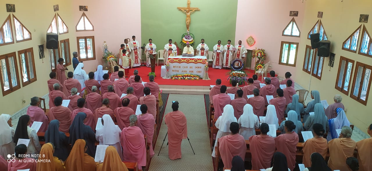 The closing celebration, which also marked the golden jubilee of the religious profession of five sisters — Sr. Ancy Mancherikalam, Sr. Flora Botelho, Sr. Jessy Pullattu, Sr. Lucy K, and Sr. Rani Arimpoor — was presided over by Most Rev. Joseph Susainathan, Auxiliary Bishop of the Archdiocese of Bangalore.