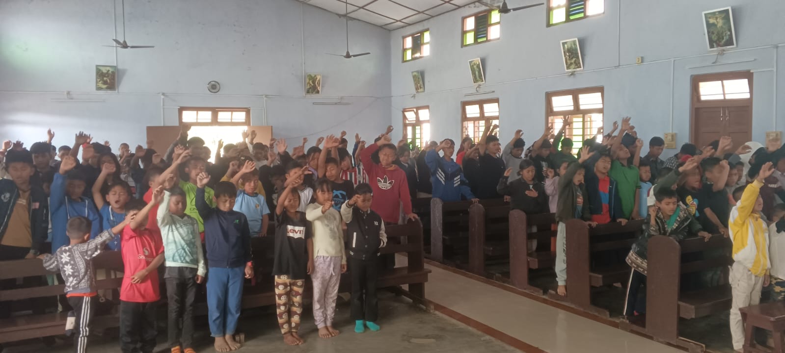 Singngat, Manipur, February 17, 2025— A two-day spiritual camp for youth and children was organised by the Archdiocese of Imphal at St. Thomas Church, Singngat, on February 15 and 16, as part of the Jubilee Year celebrations. Over 170 youngsters and children from St. Thomas Parish participated in the event, gathering to deepen their faith and spiritual connection. The camp was led by a dedicated team from the Archdiocese, including Fr. Paul Ngaoni, Director of the Archdiocese's Basic Ecclesiastical Communities (BEC) unit and Assistant Parish Priest of St. Joseph’s Cathedral; Sr. Blessy of the CMC Congregation; and Fr. Denis, Assistant Procurator of the Archdiocese of Imphal. The camp aimed to inspire and uplift the spiritual lives of the participants through prayer, worship, and interactive activities.