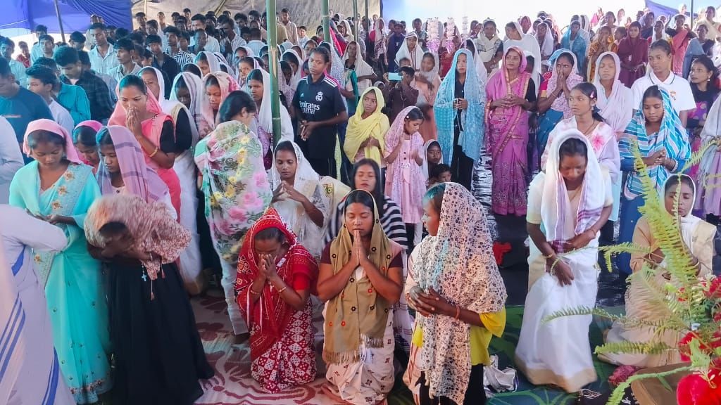 Rajanagar, 20 November 2025 — A four-day spiritual retreat for six Adivasi villages of St Joseph Catholic Church, Rajanagar, was held from 8 to 11 November at Kherm Pathar village church, bringing together communities from Kherm Mura, Kherm Pani, Khauji Pathar, Uchabam, and Koria Pani. The gathering, animated by Bro. John Bagh and the team from Jesus Come Ministry, Athabari Prayer Centre, Dibrugarh, aimed to strengthen faith, communal unity, and spiritual renewal among the participating villages.
