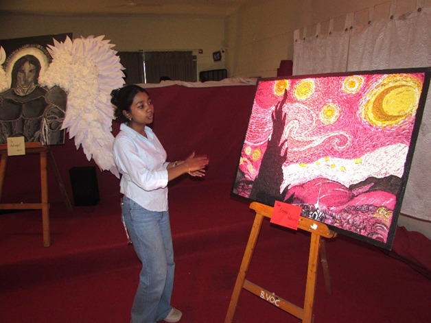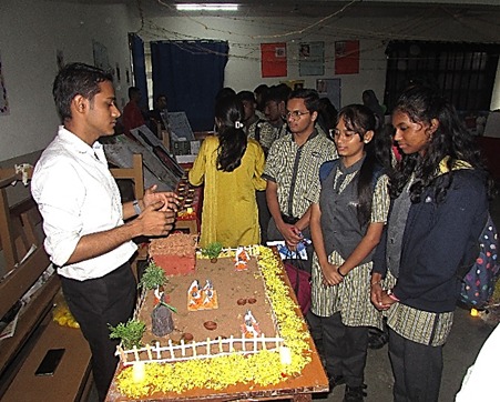 Notable exhibits included the History Department’s recreation of the Vijayanagara Empire, a pain-free injection model inspired by mosquito anatomy by the Department of Zoology, and the Commerce Department’s innovations like “SegreBot” and “From Collapse to Catalyst.” The Science departments drew attention with their work on cancer research, bioplastics, ferrofluid-based microplastic removal, and solar-powered robots. The Language departments celebrated linguistic and cultural heritage, while Media and Journalism students impressed with immersive installations and investigative exhibits.
