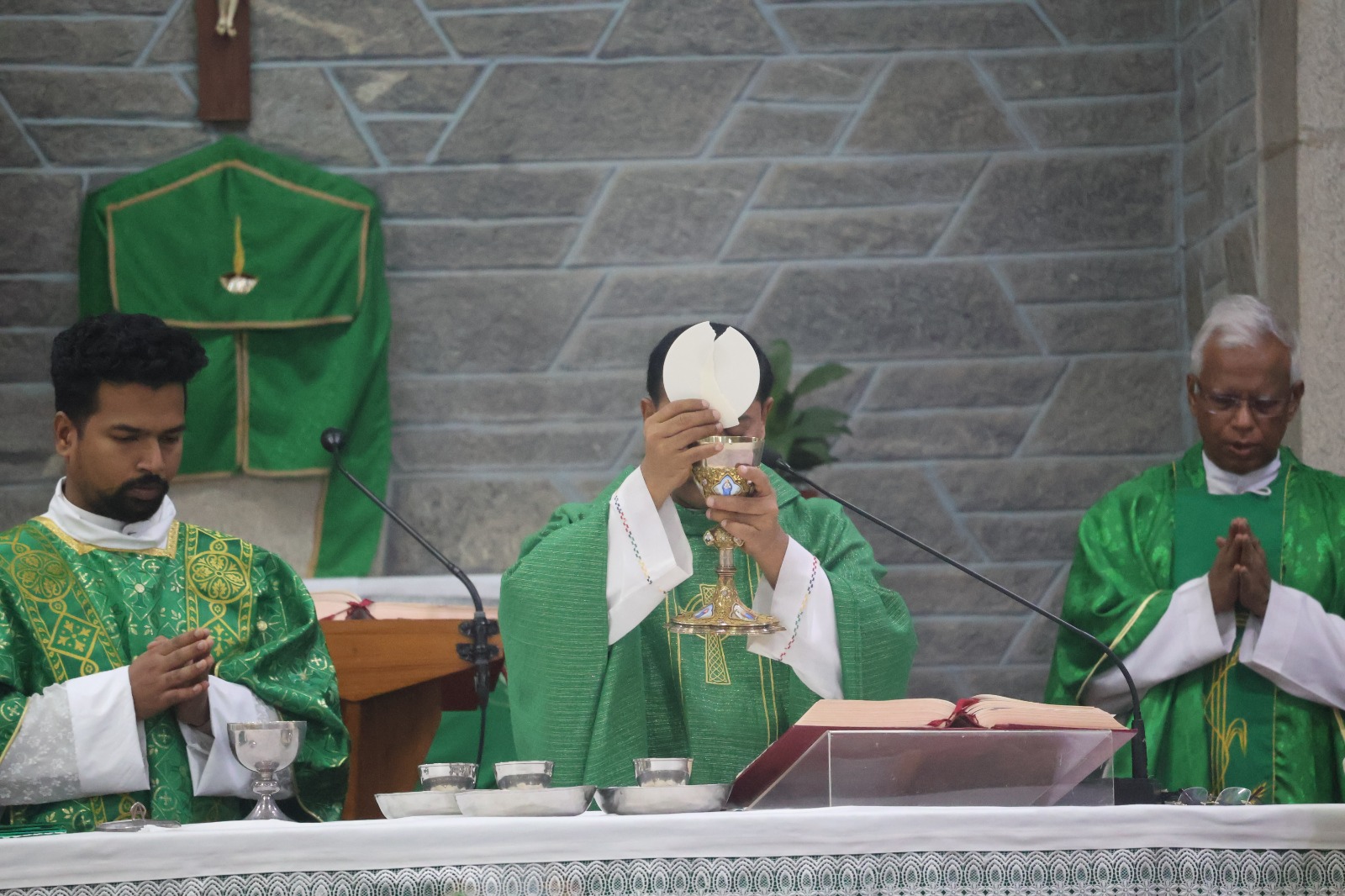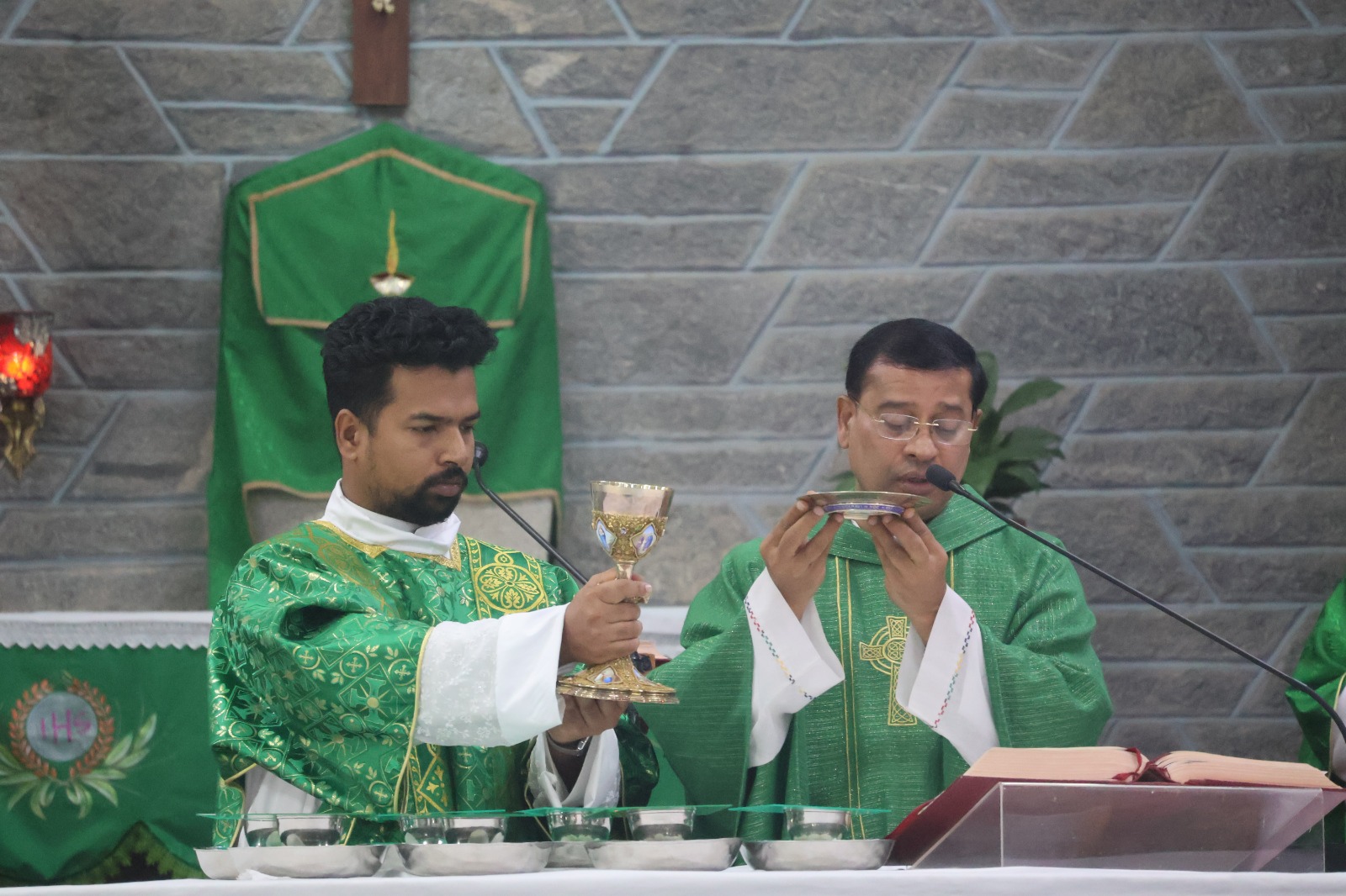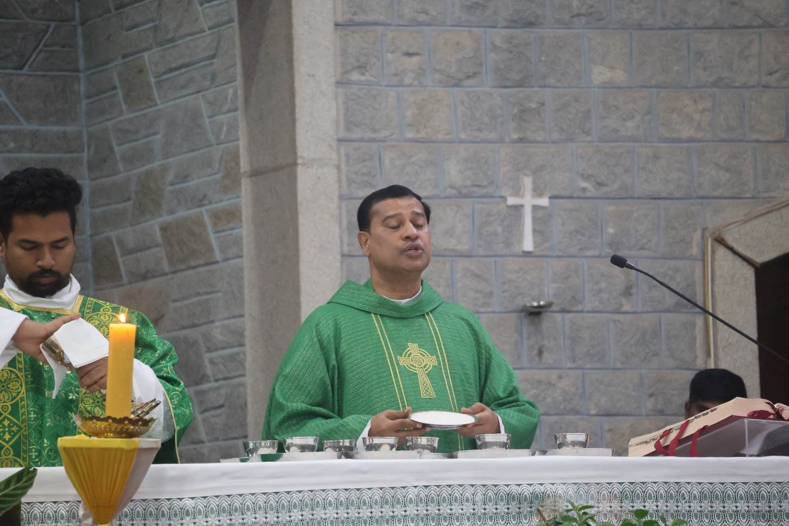 Concluding his homily, Fr. Rao explained the concept of “Eucharistic Ecology”, noting that what is offered at the altar – bread from wheat, wine from grapes, and water, the precious gift of God – are fruits of the earth and human labour. “The Eucharist is rooted in creation,” he said. “It is the sacrament of cosmic reconciliation, the place where heaven and earth meet, where the broken are blessed, and where the wounded world is offered back to God.”