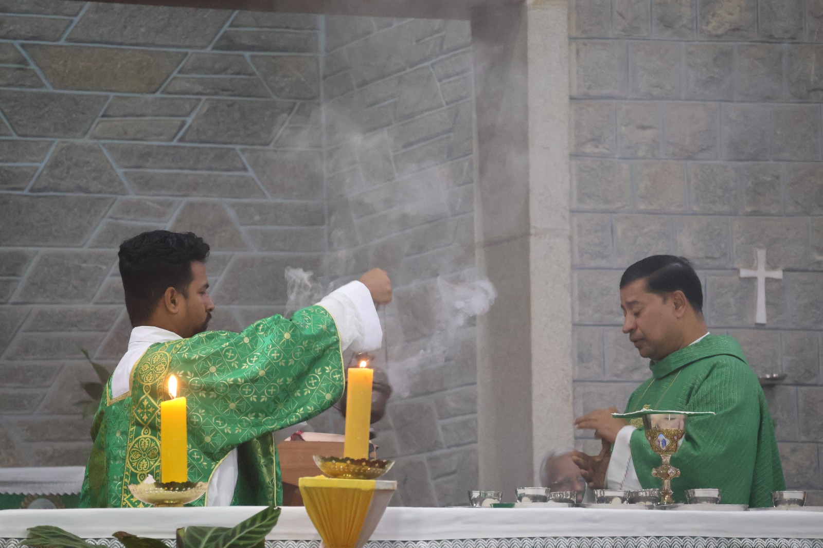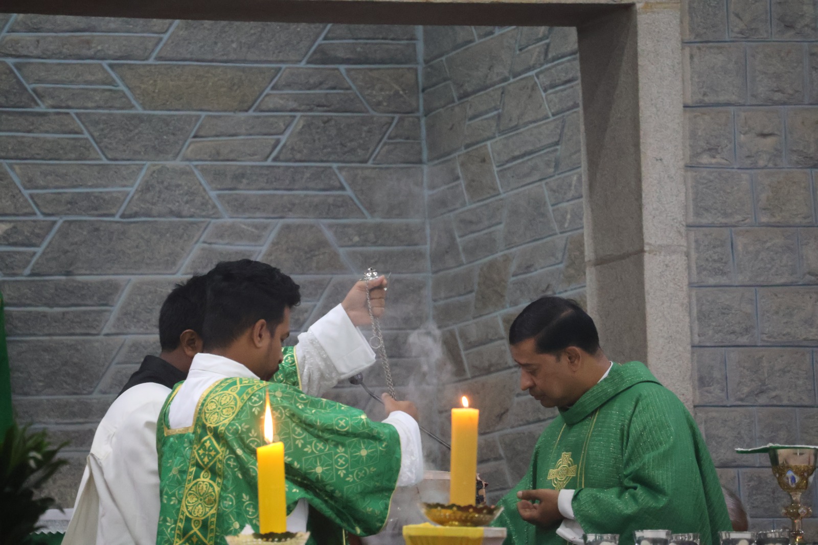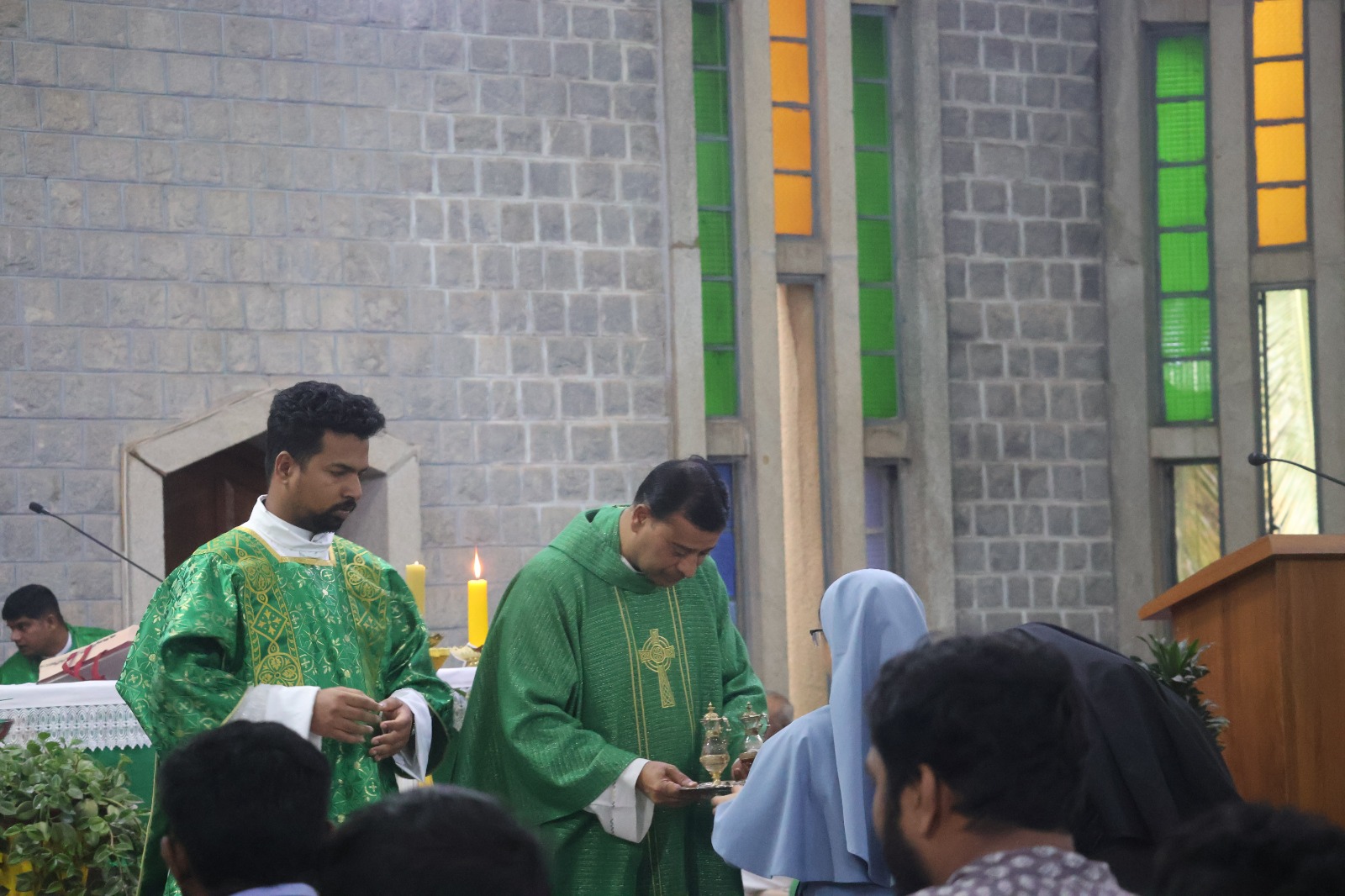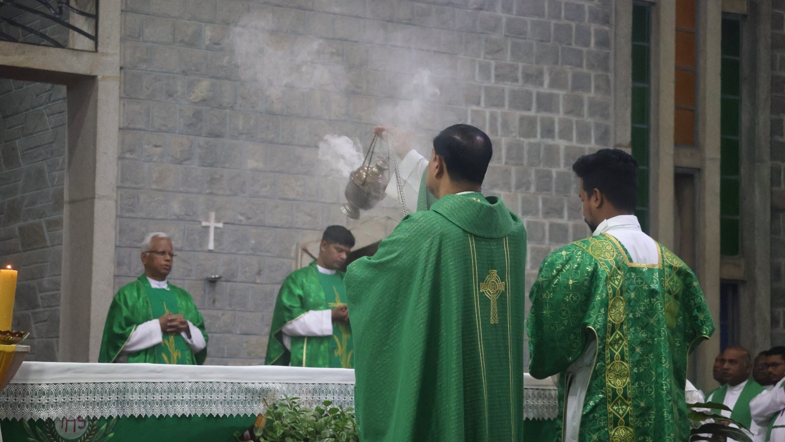 Concluding his homily, Fr. Rao explained the concept of “Eucharistic Ecology”, noting that what is offered at the altar – bread from wheat, wine from grapes, and water, the precious gift of God – are fruits of the earth and human labour. “The Eucharist is rooted in creation,” he said. “It is the sacrament of cosmic reconciliation, the place where heaven and earth meet, where the broken are blessed, and where the wounded world is offered back to God.”