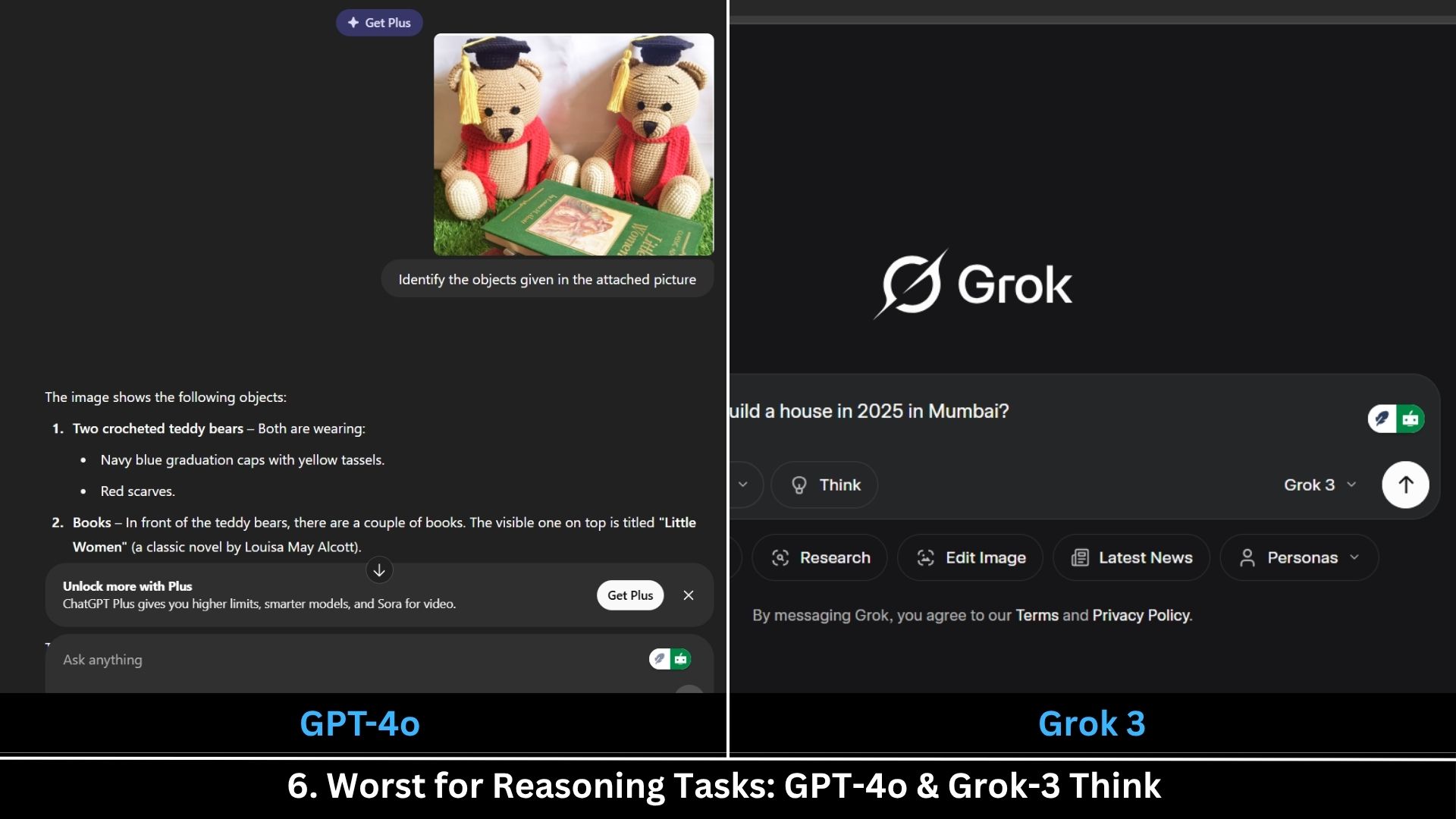 6. Worst for Reasoning Tasks: GPT-4o & Grok-3 Think