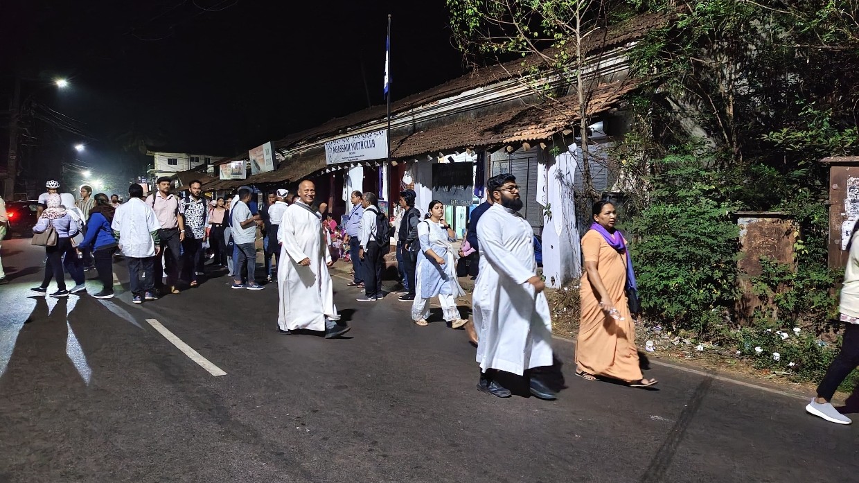 The pilgrimage commenced at 2:00 a.m. from five centres — Bambolim, Neura, Cansaulim, Verna and Vasco — with participants walking nearly 10 kilometres through the night before gathering at the historic church at dawn.