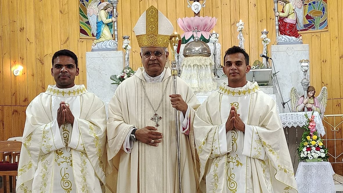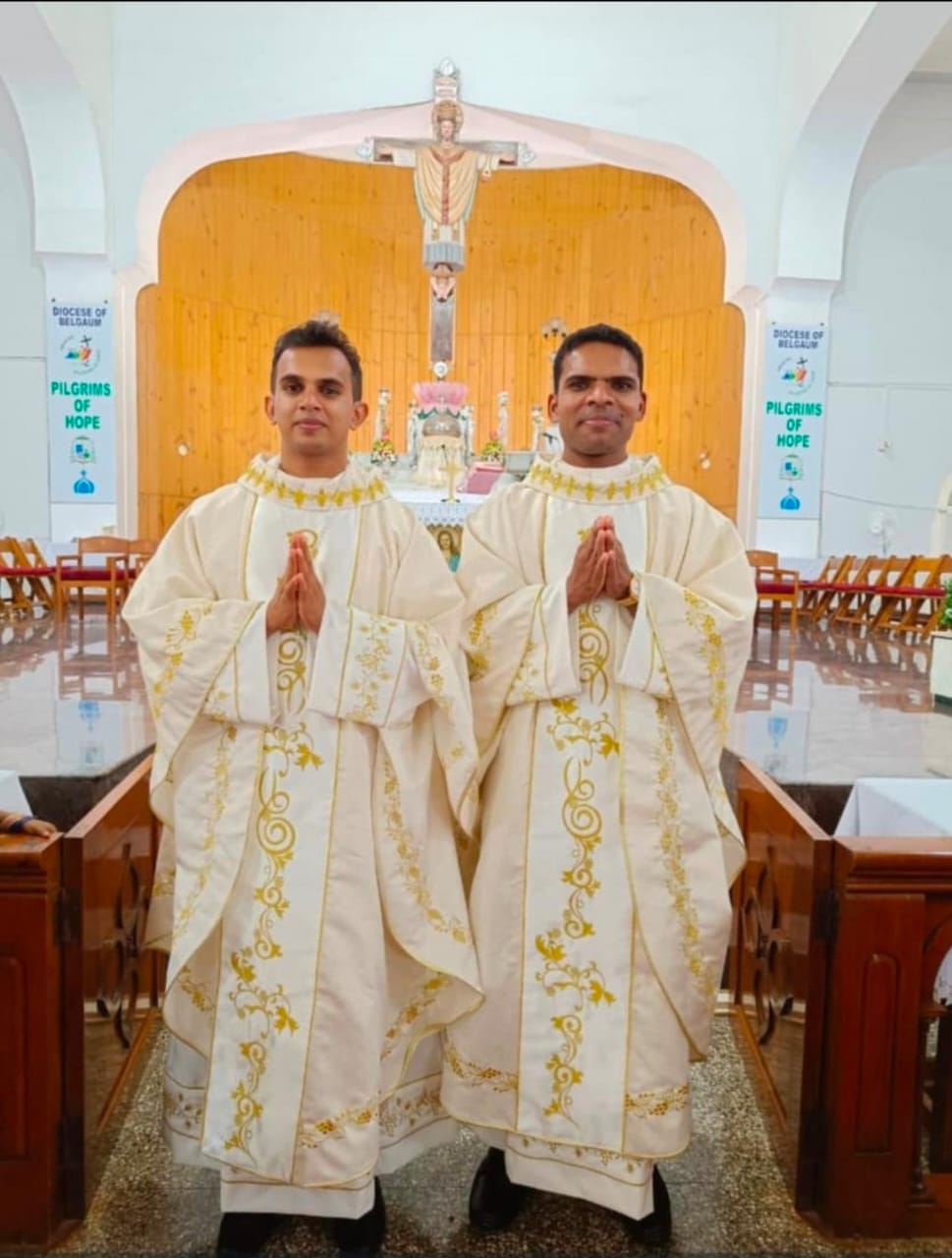 Belgaum, July 5, 2025: Deacons Peter Nazareth and Anthon Fernandes were ordained as priests for the Diocese of Belgaum during a solemn Eucharistic celebration held on June 30 at Our Lady of the Family Rosary of Fatima Cathedral in Camp, Belgaum.