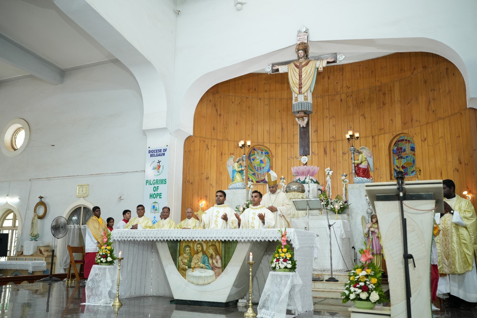 The ordination Mass, celebrated in Konkani, was presided over by His Lordship, Most Rev. Dr. Derek Fernandes, Bishop of Belgaum. More than 100 priests—including diocesan clergy and religious priests from across the region and beyond—joined the family members, friends, and well-wishers of the ordinandi in witnessing this sacred moment.