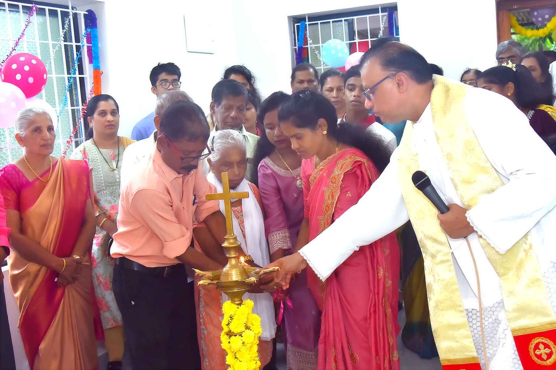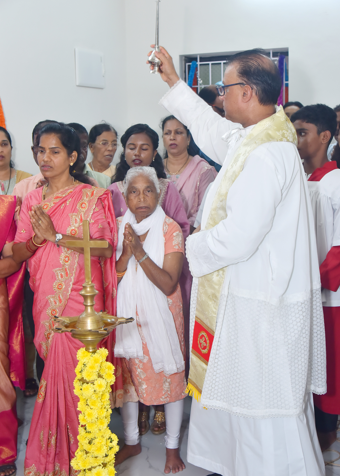 Rev. Fr. Denis D’Sa, Parish Priest of Thottam Church, presided over the handover and blessed the new home. He formally entrusted it to the Pinto family and addressed the congregation on the meaning of the moment.