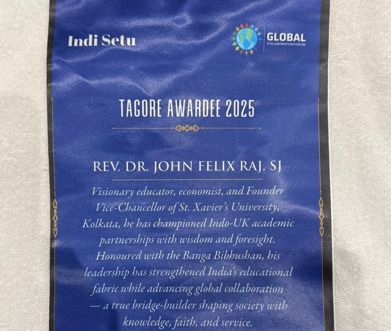 Kolkata, October 12, 2025 — Fr. John Felix Raj, Vice-Chancellor of St. Xavier’s University, Kolkata (SXUK), has been honoured with the prestigious Tagore Award in the United Kingdom for his lifetime achievements in education and leadership.