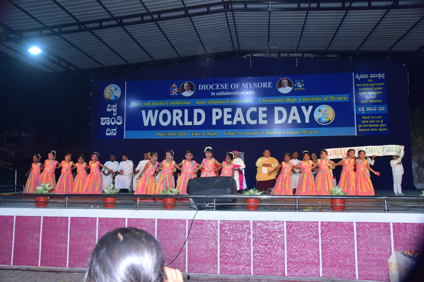 Mysuru, February 1, 2026: The Diocese of Mysore commemorated World Peace Day 2026 with an interfaith programme at the St. Philomena’s Church Campus, Mysuru, reaffirming a shared commitment to peace, justice, and human fraternity. Organised under the theme “Peace · Justice · Harmony · Human Fraternity,” the initiative was jointly hosted by the Peace and Justice Commission of the Diocese of Mysore, the Inter-Religious Commission, and the Department of Christianity, University of Mysore.