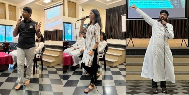 The spirit of togetherness continued with another round of action songs. This was followed by an experience-sharing session during which Ms. Jeshma Dsouza (DEXCO Cultural and Liturgy Incharge) and Mr. Aron Dsouza, former Udupi Deanery President, spoke about their enriching journeys with YCS. Their personal testimonies highlighted how the movement had transformed their lives. Two parents also spoke at the gathering, sharing the positive behavioural and emotional changes they had seen in their children through their involvement with YCS.