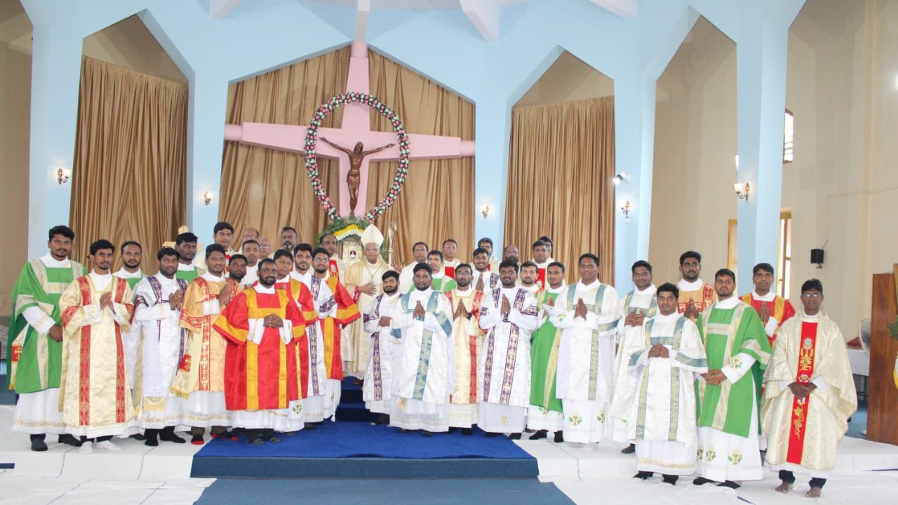 Hyderabad, October 29, 2025: Twenty-six seminarians from the Telugu Region were ordained deacons at St. John’s Regional Seminary, Hyderabad on 28 October. Bishop Thelagathoti Joseph Raja Rao of Vijayawada, Secretary of the Telugu Catholic Bishops’ Council (TCBC), conferred the sacred ordination.
