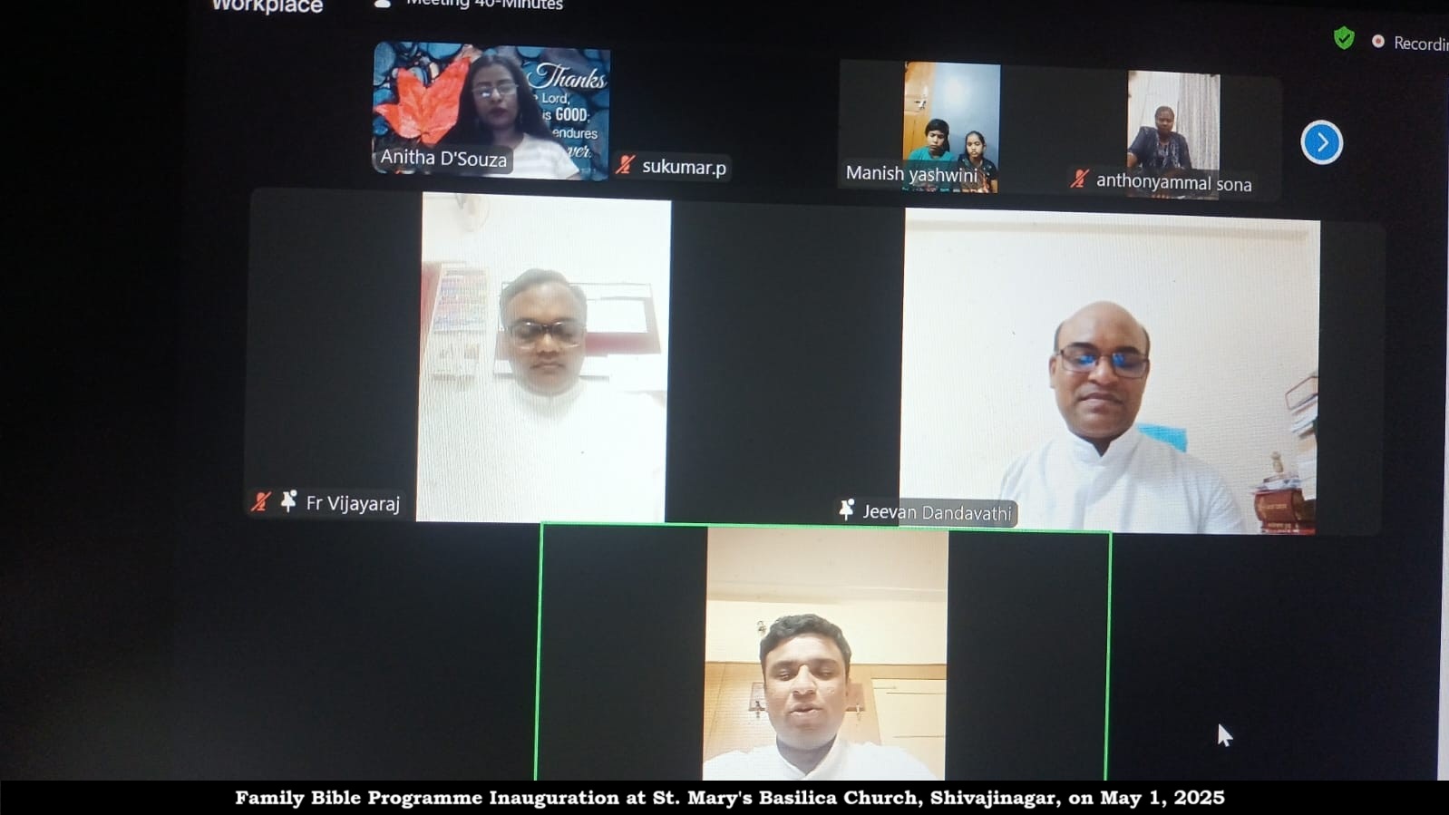 Bangalore, May 26, 2025: The Archdiocesan Bible Commission of Bangalore has been conducting daily online Bible sessions and weekly quizzes via Zoom during May 2025 as part of its Family Bible Proclamation (FBP) programme. Families from various parishes across the city participate in these daily and weekly sessions. Led by the enthusiastic FBP team, this vibrant spiritual movement engages families in Scripture reading and reflection by sharing chapter summaries and key insights, followed by an interactive quiz.