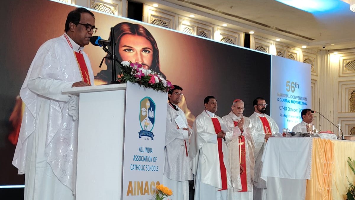 Goa, October 8, 2025: Delivering the homily at the inaugural Eucharistic celebration, Archbishop Filipe Neri Cardinal Ferrão urged them to “be rooted in Christ and be messengers of hope,” inspiring participants at the National Convention and General Body Meeting of the All India Association of Catholic Schools (AINACS). He emphasised that loving care, joyful service, and generous forgiveness are essential attitudes for hope-filled leadership, encouraging schools to foster a culture of mercy, understanding, and witness.