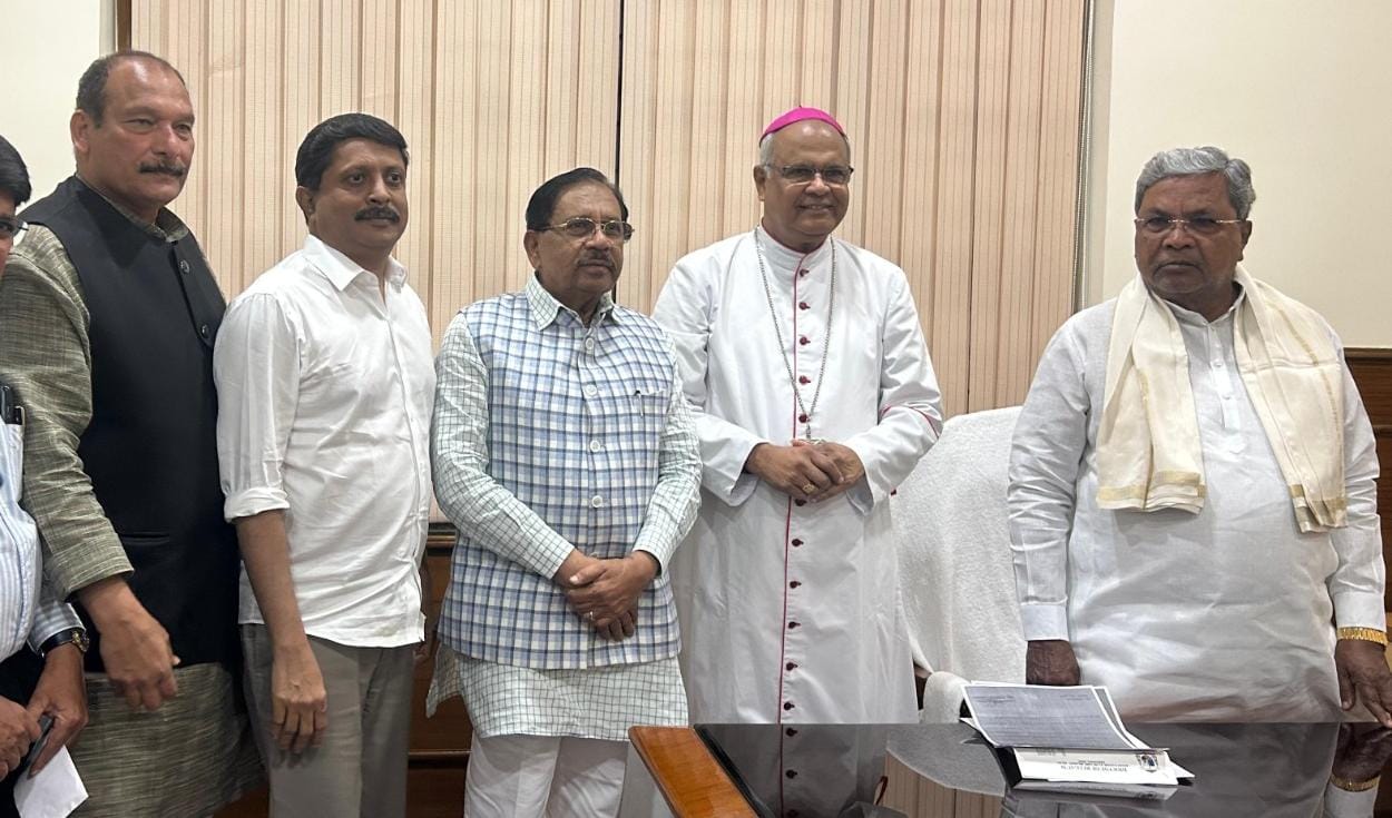 Belagavi, December 10, 2025 — A dispute over the construction of a priest’s residence and a small church at Holy Family School in Gajendragad has reached the highest levels of state leadership, after Bishop Derek Fernandes of the diocese of Belgaum submitted a formal memorandum to Chief Minister Siddaramaiah, Home Minister Dr G. Parameshwar and Law Minister H. K. Patil, seeking urgent intervention. The Bishop was accompanied by MLC Ivan D’Souza and Fr Pramod Kumar during the submission.