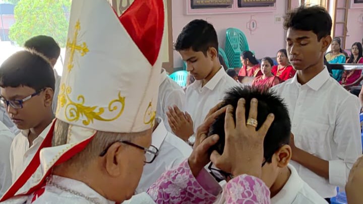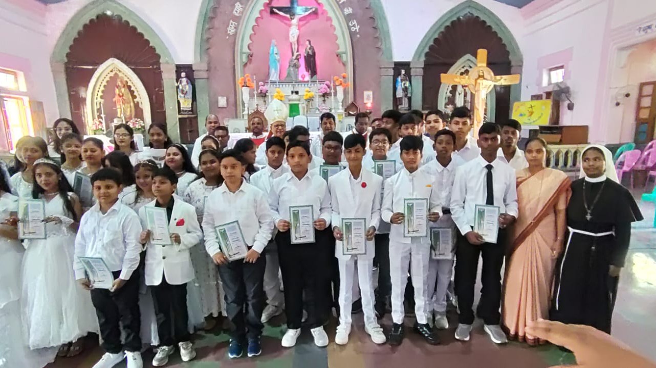 Bettiah, October 21, 2025 — On Mission Sunday, Bishop Peter Sebastian Goveas of Bettiah conferred the Sacrament of Confirmation on forty-one children of Bettiah Parish at the Cathedral of the Nativity of the Blessed Virgin Mary. The celebration marked a moment of joy and renewal for the parish community as the children, accompanied by their godparents, were fully initiated into the life of the Church.