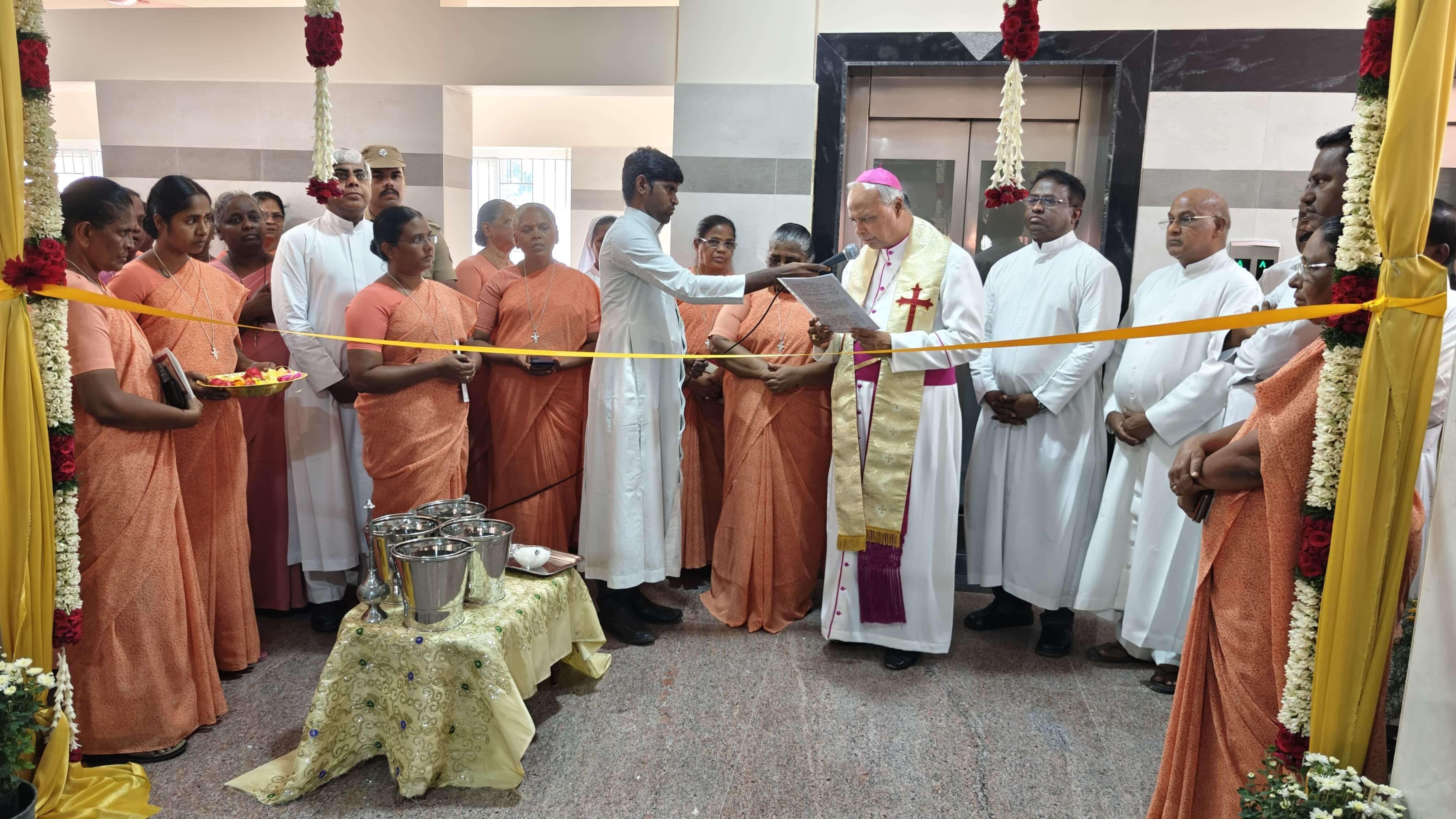 The celebration of the Holy Eucharist, presided over by Archbishop George Antonysamy and concelebrated by several priests, served as the spiritual high point of the inauguration ceremony. The event also featured cultural programs that were compered by Rev. Dr. Annal Rita Rani FBS, General Secretary of Bon Secours Congregation. These programs included a vibrant dance performance by Bons Natyalaya from Dindigul. Rev. Sr. Pauline Agnes FBS, Assistant Superior General of Bon Secours, delivered the welcome address at the beginning of the cultural program. At the end of the program, Rev. Dr. Mariammal FBS offered the vote of thanks, in which she expressed gratitude to all those who contributed to the organizing of the event.