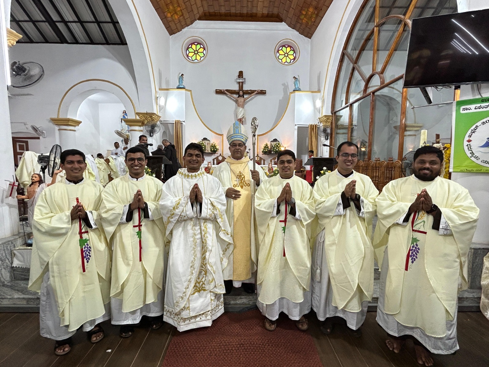 Six Discalced Carmelite deacons were ordained to the priesthood: on May 2, Deacons Prithesh Crasta, Avith Pais, Pranay Pereira, and Stany Pinto were ordained by Most Rev. Francis Serrao SJ, Bishop of Shimoga Diocese, at the Infant Jesus Shrine, Bikarnakatte, Mangalore; on May 19, Jesvin Benoy was ordained by Most Rev. Johannes Gorantla OCD, Bishop of Kurnool Diocese, at the Infant Jesus Shrine, Mysuru; and on May 21, Movin Desmond Pereira was ordained by Most Rev. Louis Mascarenhas, Bishop of Allahabad Diocese, at St. Vincent de Paul Church, Katapady, Udupi.