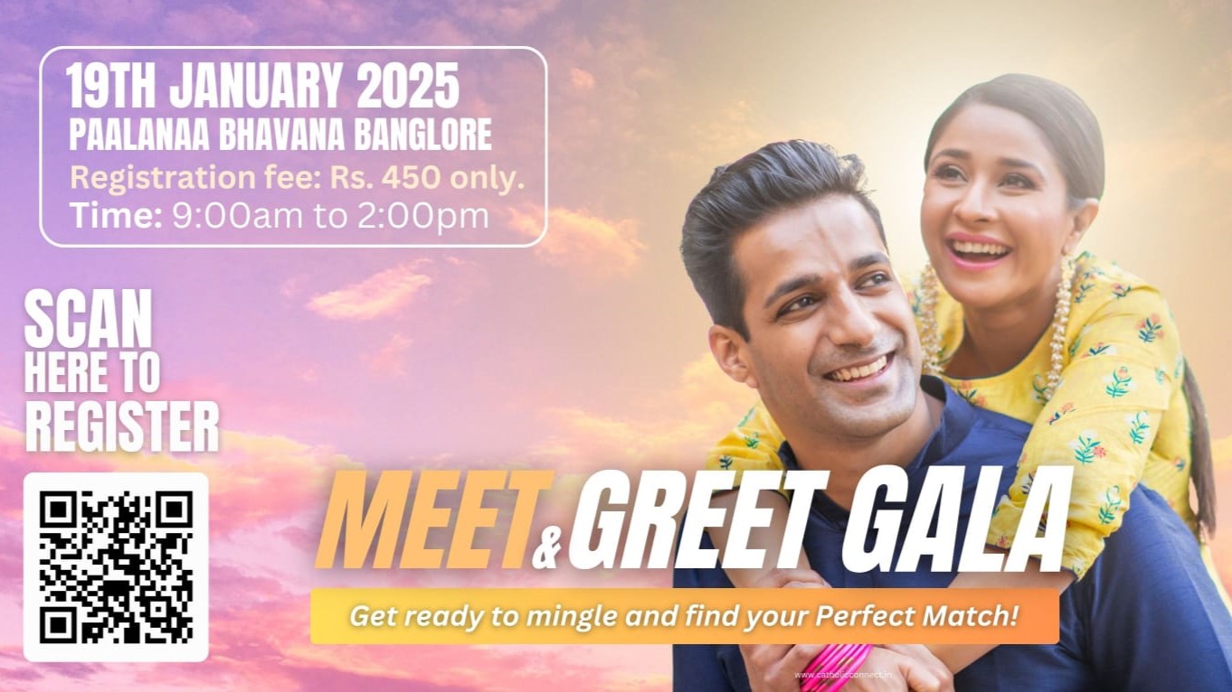Bangalore, January 14, 2025: Catholic Connect Matrimony, an initiative by the Conference of the Catholic Bishops of India (CCBI), is excited to announce its highly anticipated Meet and Greet Gala, a unique event tailored for young, unmarried Catholics. The event is scheduled for Sunday, January 19, 2025, at Paalanaa Bhavana in Bangalore from 9:00 am to 2:00 pm. This gathering aims to foster meaningful connections, promote spiritual growth, and offer valuable relationship insights for young Catholics.