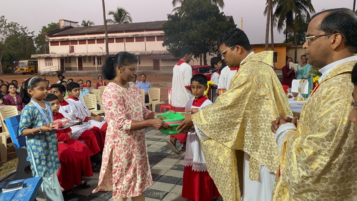 The celebration began with the recitation of the Rosary, setting a reflective tone for the Eucharistic liturgy that followed. The Holy Mass was presided over by Fr. Dancy Martis OFM Cap, Principal of St. Philip Neri English Medium School. He was assisted by the Parish Priest, Fr. Edwin D’Souza.