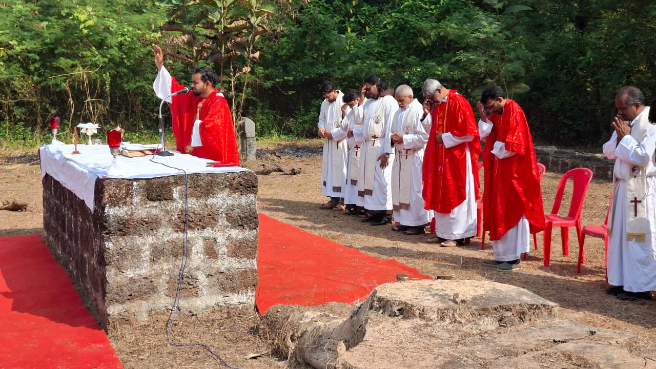Old Goa, November 29, 2025: The Discalced Carmelites in Goa marked the feast of Blesseds Dionysius (Denis of the Nativity) and Redemptus of the Cross with a solemn Eucharistic celebration at the historic ruins of their first monastery, Convento do Carmo, Old Goa. The annual celebration, held at the site where both martyrs once lived and formed their Carmelite vocation, brought together Carmelite friars, nuns, and members of the Secular Carmel from across Goa.