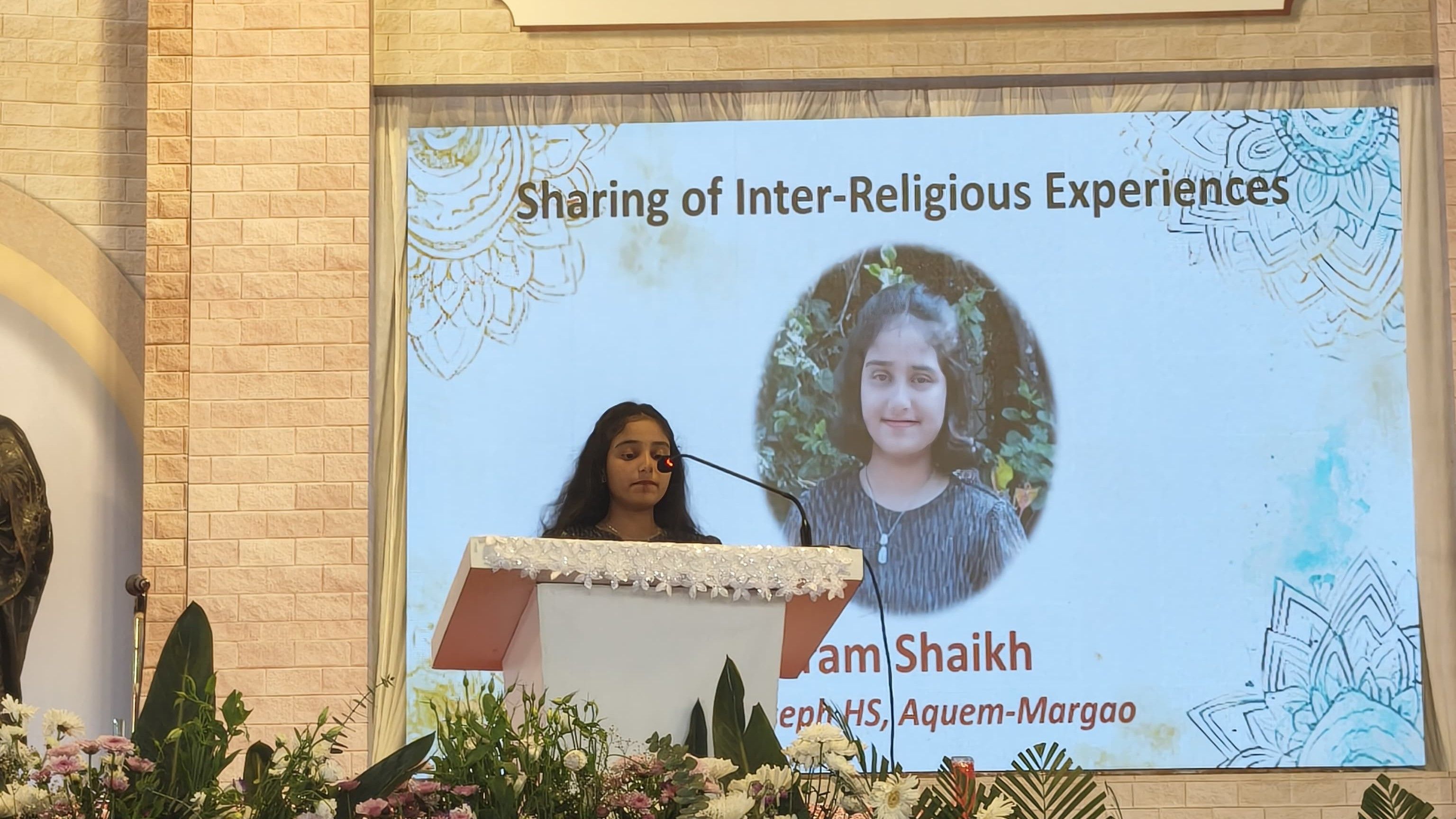 Students Iram Shaikh of St. Joseph High School, Aquem-Margao, and Gargi Jagdish Shirodkar of Rosary Higher Secondary School, Navelim, spoke about the significance of dialogue and understanding among young people while sharing their own inter-religious experiences.