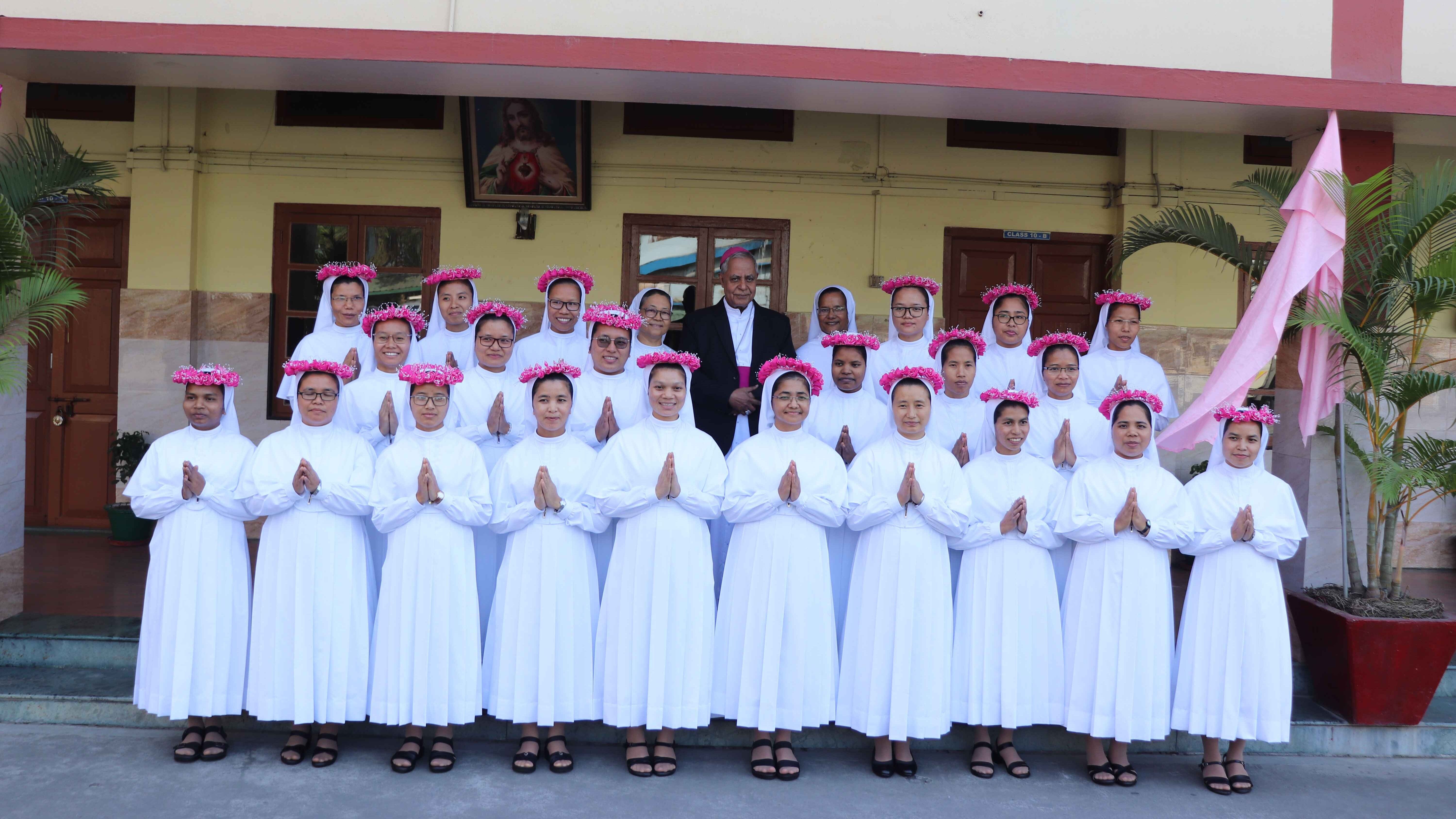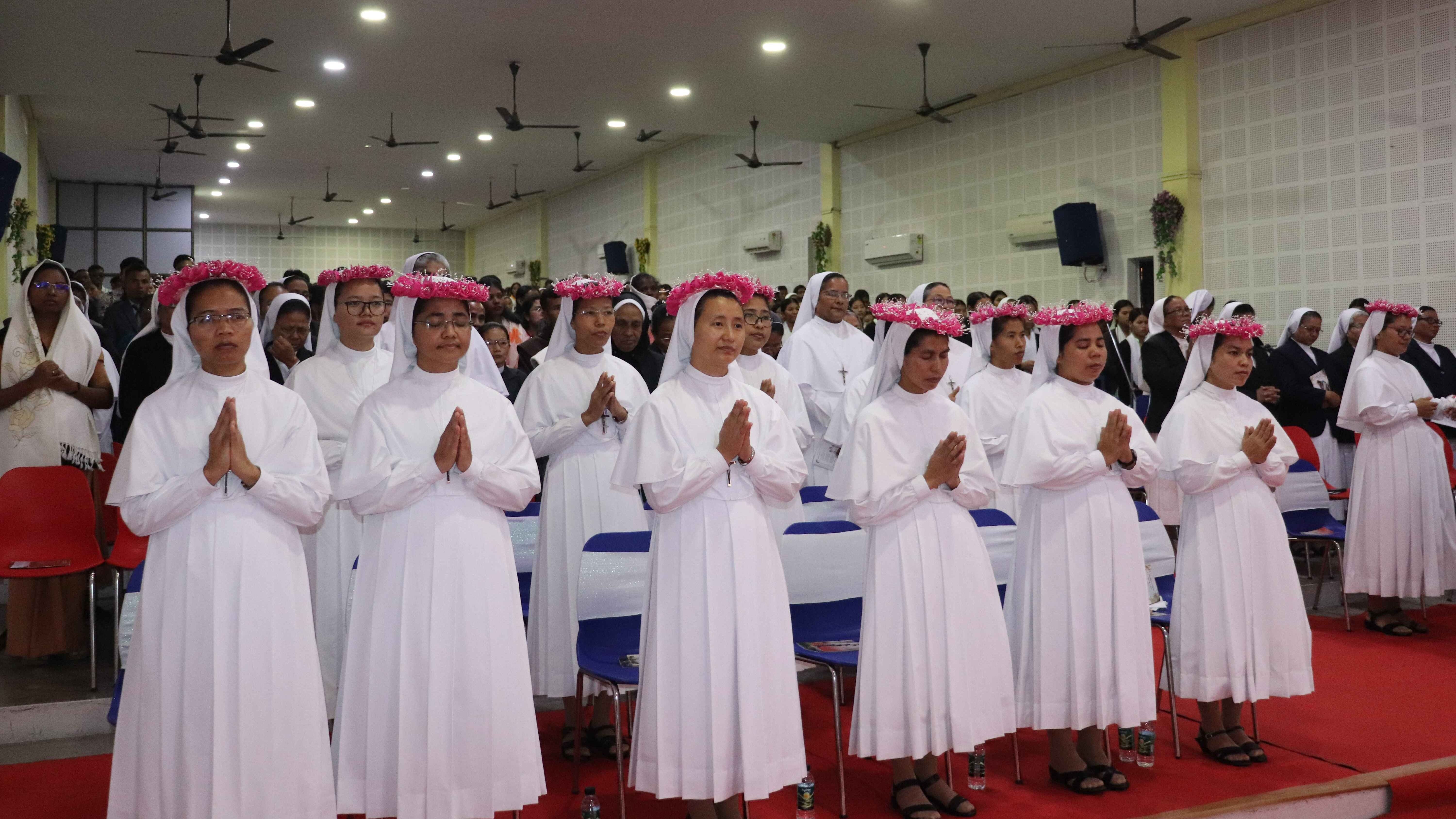 At Jyoti Bhavan, Tezpur, 24 sisters professed their first vows during a Mass celebrated by Bishop Michael Akasius Toppo. Sr. Asha Paul, Provincial Superior of the Tezpur Province, received the vows on behalf of the Superior General. Bishop Toppo commended the sisters for their courageous commitment, urging them to bear witness to Christ and remain faithful to the mission entrusted to them.