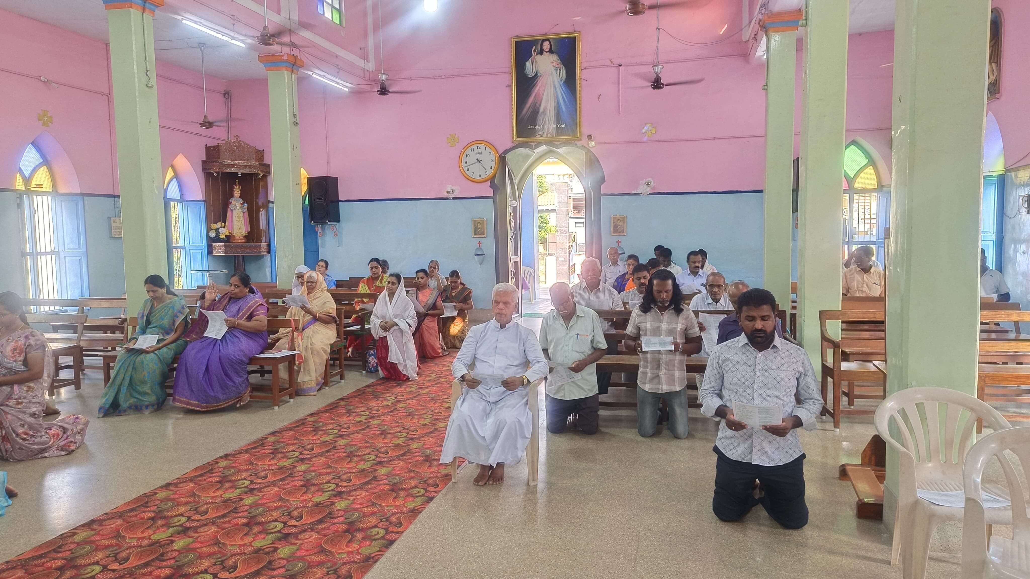 The programme commenced with an introductory address by Fr. Stanly Xavier, who welcomed the congregation and explained to them the purpose of the event. He and his music team then led the faithful in worship through devotional songs and hymns, creating an atmosphere of deep spiritual fervour. During the worship session, the Blessed Sacrament was exposed, allowing parishioners to engage in prayer and adoration. The gathering spent over an hour and a half in praise and worship, glorifying God through music.