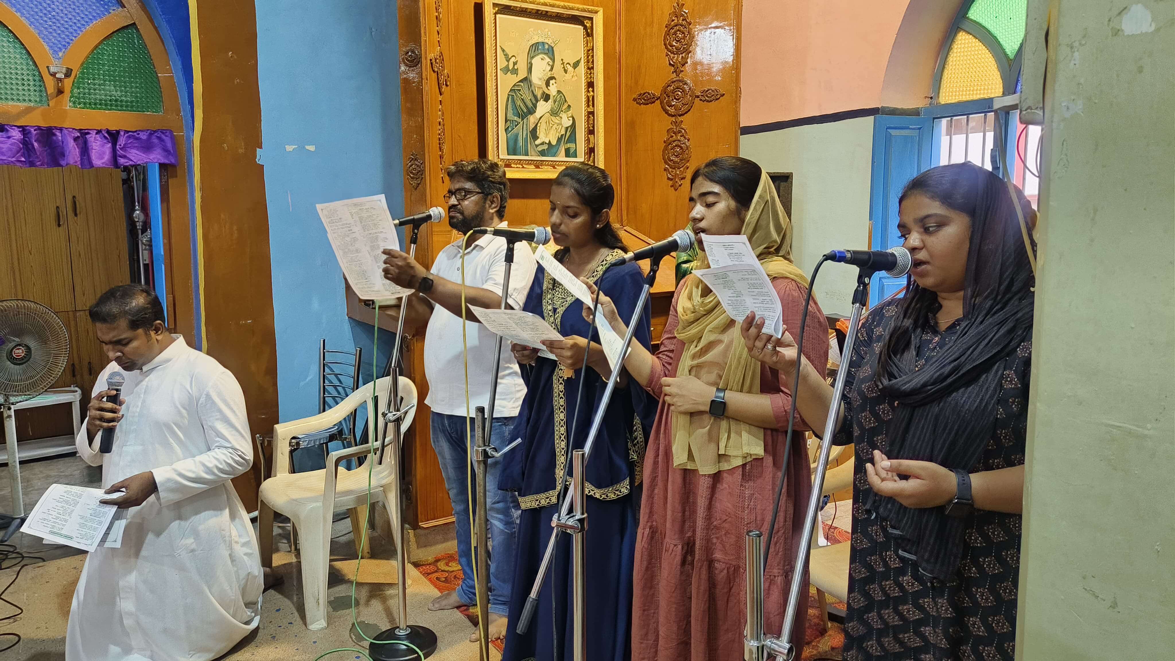 The praise and worship session was followed by a solemn celebration of the Holy Eucharist. The celebration was presided over by Rev. Fr. Stanly Xavier and concelebrated by Rev. Fr. Irudaya Selvam, the parish priest of St. Mary’s Church, and Fr. Francis Xavier, the assistant parish priest. During the Mass, Fr. Irudaya Selvam delivered an insightful sermon, emphasising the significance of music in strengthening the faith journey of the parish community.