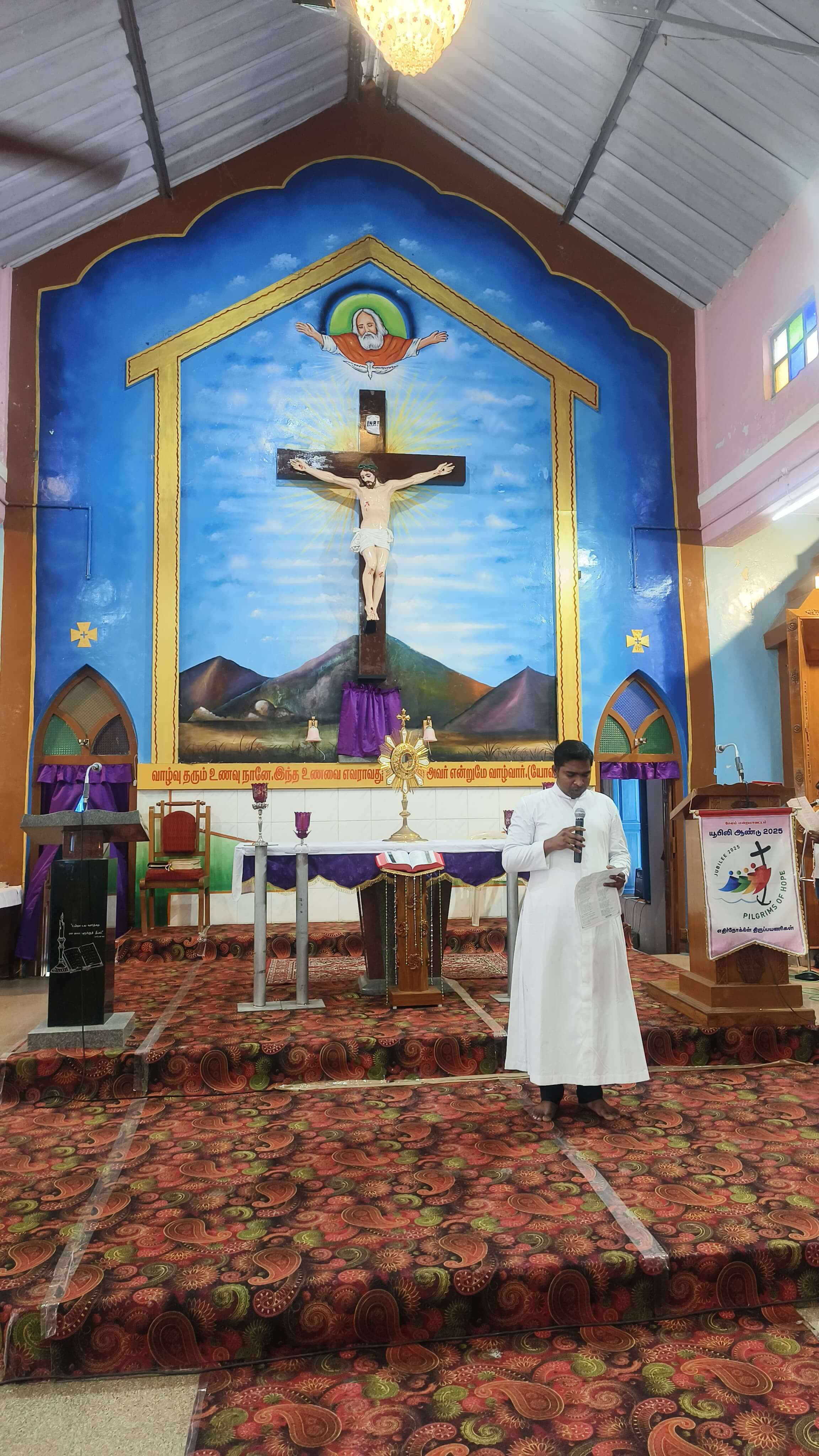 Mettur Dam, Tamil Nadu, March 26, 2025 – Parishioners of St. Mary’s Church, Mettur Dam, in the Diocese of Salem, participated in a vibrant music ministry event on the evening of March 23, 2025. The event, held as part of the parish’s jubilee year celebrations, was led by Rev. Fr. Stanly Xavier, principal of St. John’s National Academy, Salem, and priest in charge of the diocese's music commission. Fr. Stanley was supported during the event by his team of musicians and singers from the Salem Diocese. The evening featured an uplifting session of praise and worship, the exposition of the Blessed Sacrament, and a special Holy Mass.