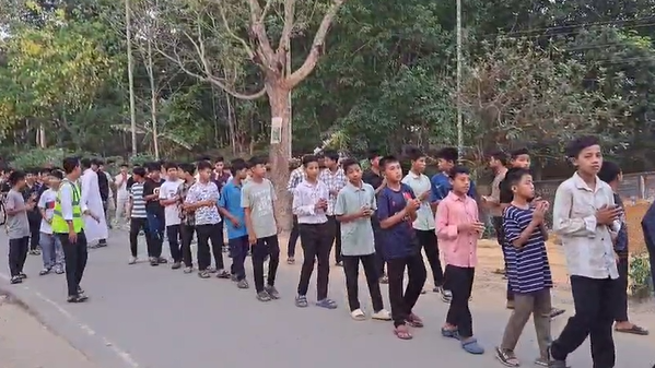 The rally began at the church premises and proceeded to the local village panchayat office before returning to the parish. Fr. Ivan D’Silva, SVD, the parish priest, led the faithful in prayer before the march commenced.