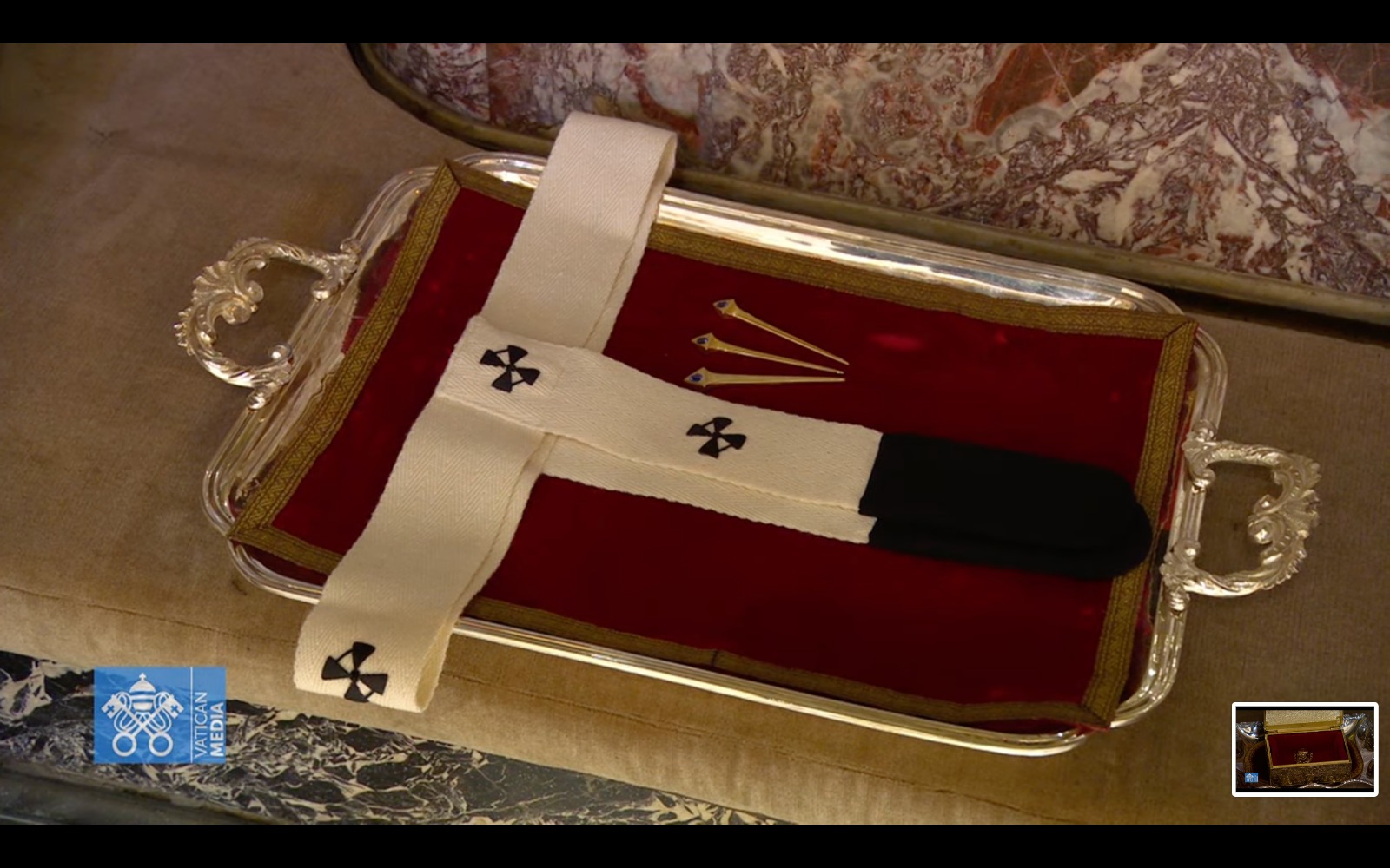 The pallium, a narrow circular band made of white lamb’s wool, will be draped over the Pope’s shoulders. Two strips will hang down the front and back, forming a Y-shape, and six black crosses will adorn the garment. Worn over a green chasuble, the pallium will symbolise the pope’s role as shepherd of the universal Church and his unity with metropolitan archbishops, who must also receive it before exercising authority in their provinces.
